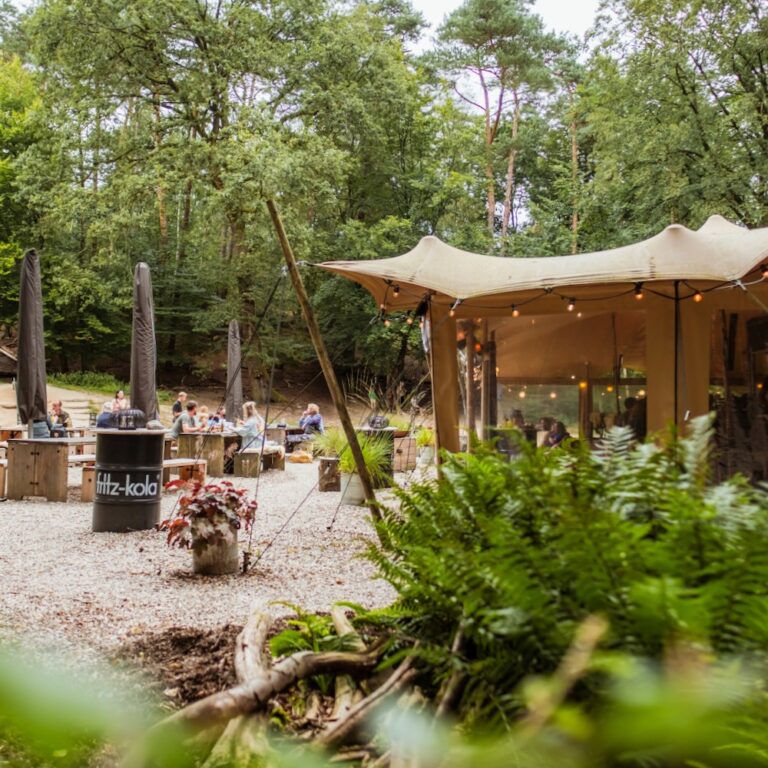 WOODZ is de leukste plek voor een tussenstop tijdens een wandeling over de Veluwe. Gelegen aan de rand van de Posbank ligt dit stoere restaurant. Het aantal zitplaatsen binnen is beperkt, maar ook in de winter is het terras van WOODZ een geliefde plek. Kachels van Weltevree branden, er liggen dekentjes voor je klaar en de stoelen en banken zijn bedekt met schapenvachten. ’s Zomers vind je een plekje in het gras, op de picknickbanken van Weltevree of in de schaduw onder het deels overdekte terras. Neem je kinderen met een gerust hart mee. Jij met een wijntje in je hand, zij spelend met de kabelbaan, op de glijbaan of in het zand.