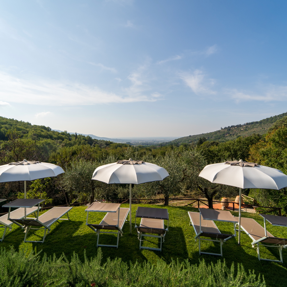 Bij terugkomst wacht het zwembad met panoramisch uitzicht over het Val di Chiana. Ligbedden, stilte en vogelgeluiden vormen hier het decor van lange zomerdagen.
