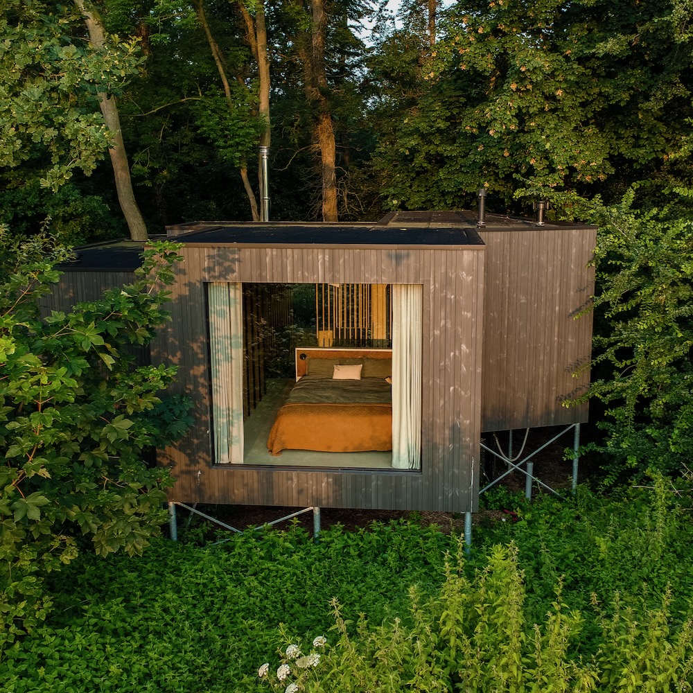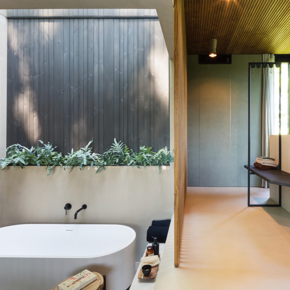 Herken je de stijl van BAST? Dat kan goed, design cabin LOOF is het oudere zusje van BAST. Het grootste verschil? Bij LOOF ga je buiten in bad, bij Bast staat het bad binnen. Onder een groot dakraam zodat je toch het gevoel hebt buiten te zijn.