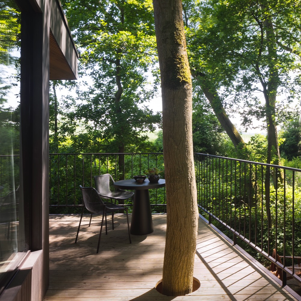 BAST voelt als een eiland – ver weg van alles – maar ligt verrassend dichtbij de bewoonde wereld. Op het terras ontbijt je tussen de eekhoorns, bij de vuurschaal beneden proost je op het goede leven. Zodra je de trap van BAST afdaalt, wandel je zó de natuur in. De Kluizenaarswandeling slingert langs holle wegen en beukenbossen, en met een paar trappen ben je bij het Limburgse fietsknooppuntennetwerk. In het voorjaar kleurt de regio Haspengouw zachtroze en wit van de bloesems in de boomgaarden, in de herfst heeft het landschap een gouden gloed. En tussendoor? Bezoek Tongeren – met de zondagse antiekmarkt – of ontdek Borgloon, een charmant stadje met kunst in het landschap zoals het doorkijkkerkje. Lokale wijndomeinen en fijne restaurants liggen op fietsafstand. Mocht je de drang voelen om de drukte op te zoeken: BAST ligt in de driehoek Hasselt, Maastricht en Luik. Je hoeft alleen maar te kiezen.