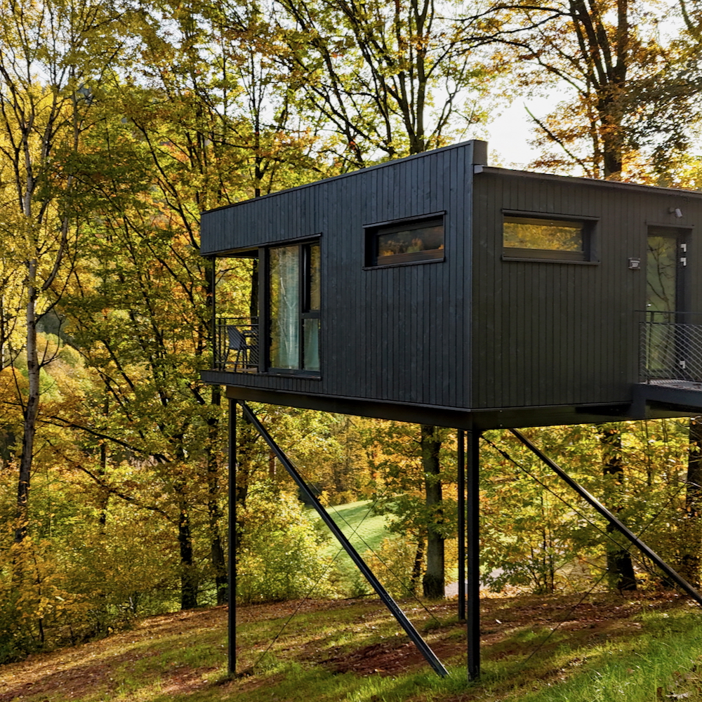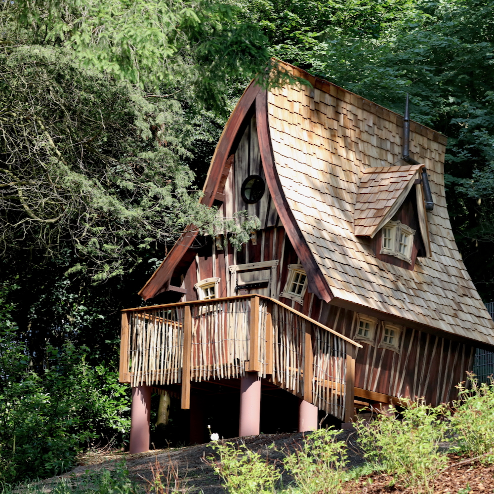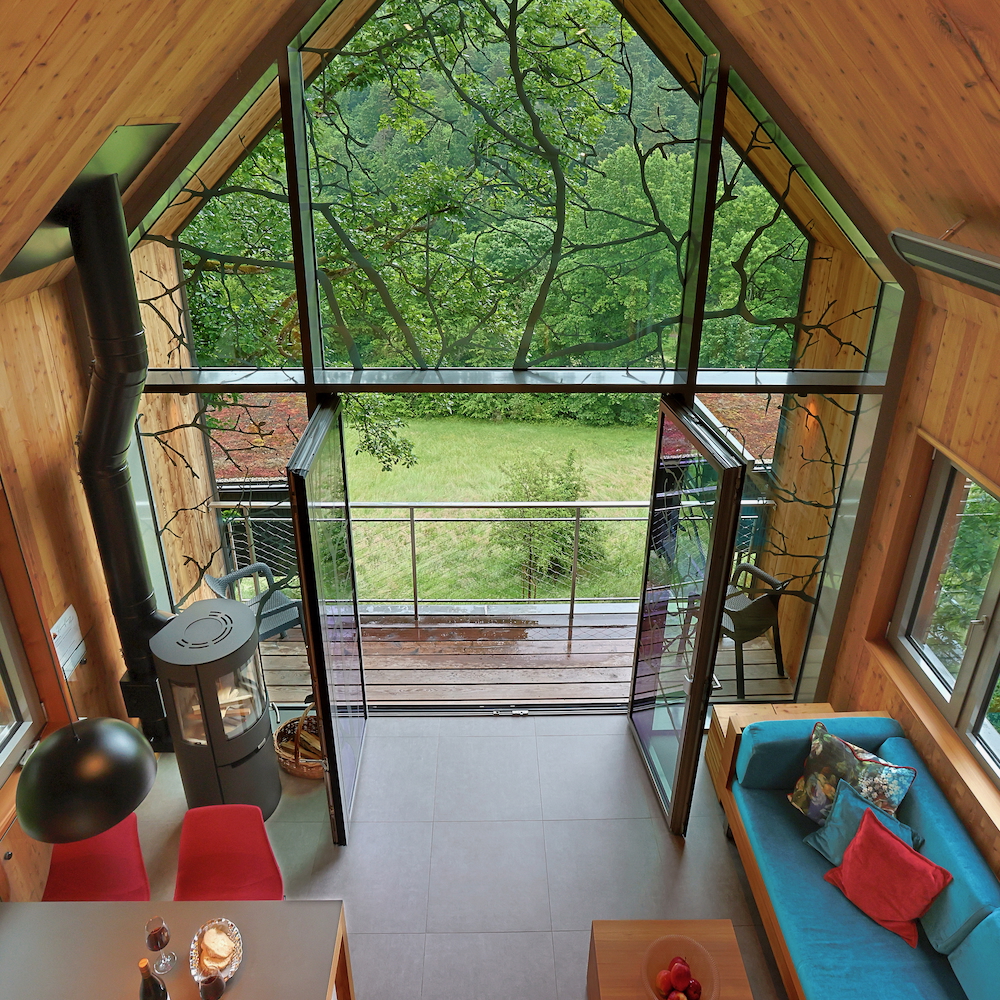 De accommodaties van Jugendstilhotel Trifels zijn stuk voor stuk uniek. Wat je ook kiest voor jouw bijzondere overnachting: overal geniet je van de combinatie van natuurbeleving, comfort en design. Zo staan de Baumwipfelhäuser op palen. Ze torenen hoog boven alles uit. Door de grote ramen zie je de Burg Trifels en hoor je de vogels fluiten – gewoon vanaf de bank. Met de goed uitgeruste keuken en plaats voor tot vijf personen zijn deze boomhutten ideaal voor een vakantie met je gezin of vrienden. De Bergchalets zijn tiny houses op palen, met een strak design en toch warm. Gebouwd van natuurlijk eikenhout en voorzien van een knusse slaapnis met een groot raam en een overdekt terras, bieden ze geborgenheid en vrijheid tegelijk. En dan zijn er nog de Hexenhäuschen: sprookjesachtige huisjes die verscholen liggen aan de bosrand boven Annweiler. Eenvoudig, origineel en bijna betoverend.