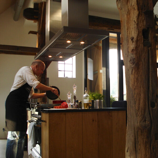 Alleen al de weg naar B&B Olthuys toe is genieten. Een slingerende landweg door het coulissenlandschap van de Achterhoek. Glooiend en met vergezichten over akkers en velden met op de achtergrond de kerktoren van Kranenburg. Bij aankomst voel je je meteen in de watten gelegd door gastheer Gijs. In de winter brandt de haard in de grote gemeenschappelijke ruimte, de voormalige deel. Hier is een grote open keuken aanwezig, waar het ontbijt wordt bereid en die je kunt gebruiken wanneer je de hele B&B als vakantiehuis reserveert. In de zomer loop je door de openslaande tuindeuren het terras op. Regelmatig kun je bij Gijs aanschuiven voor een (h)eerlijk driegangen diner, persoonlijk bereid met ingrediënten uit de moestuin.