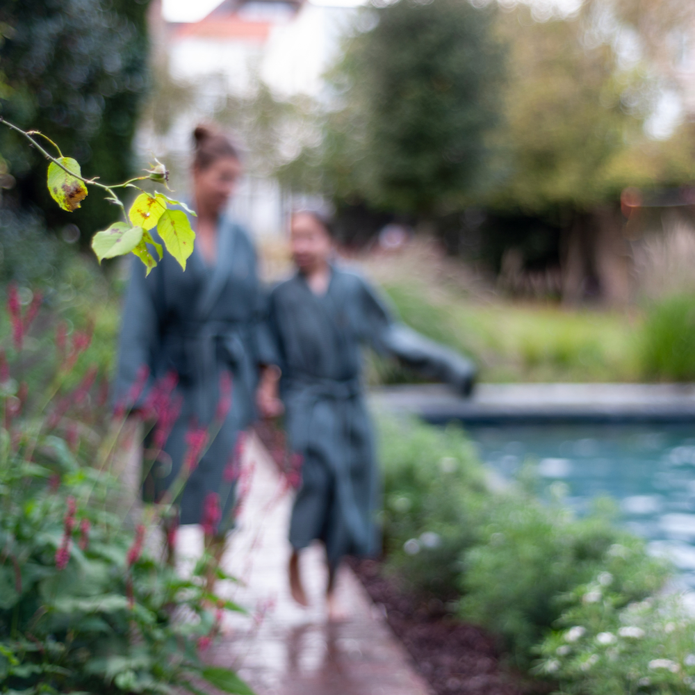 In de tuin ligt het verwarmde zwembad (beschikbaar van april tot oktober, afhankelijk van de buitentemperatuur) voor alle gasten. De wellness is privé en kan apart bijgeboekt worden voor 3 uur of langer. Er is een sauna (een Iglusauna), een hammam, een outdoor whirlpool, een stortemmer, een regendouche en een loungeruimte. Na het ontdekken van Brugge is het hier heerlijk ontspannen.