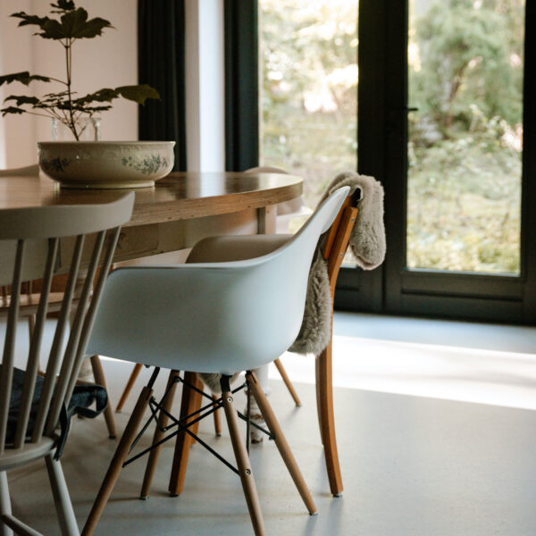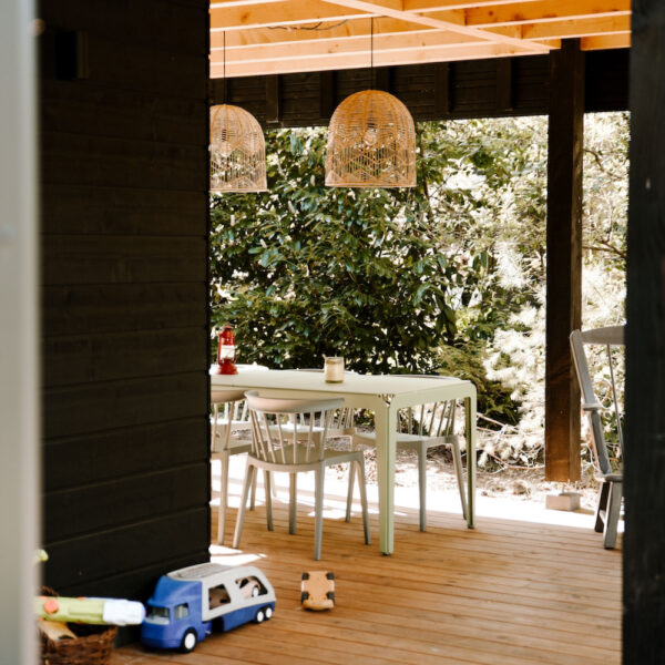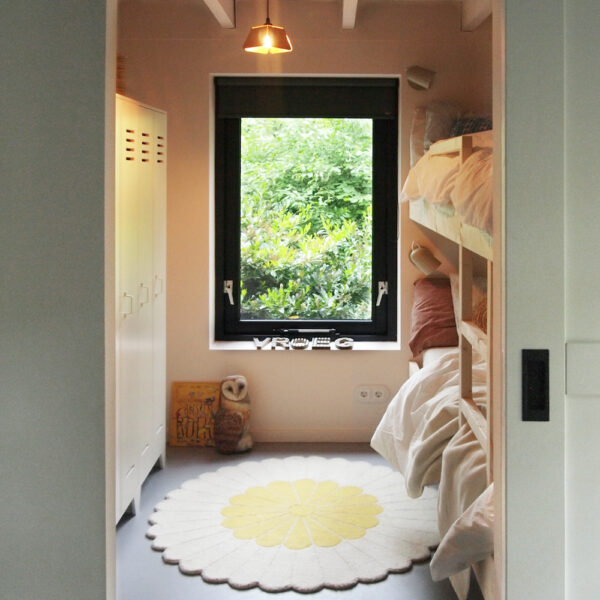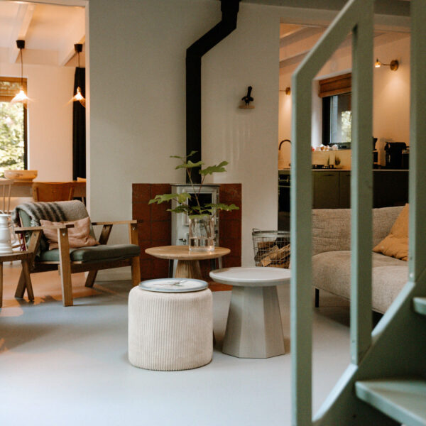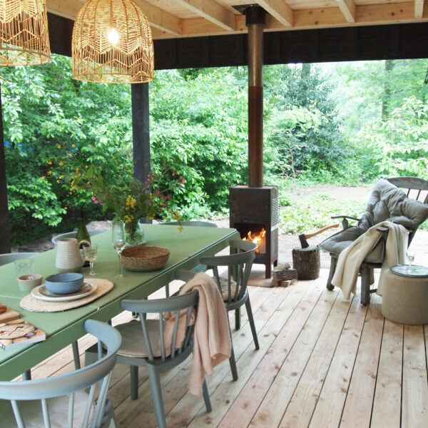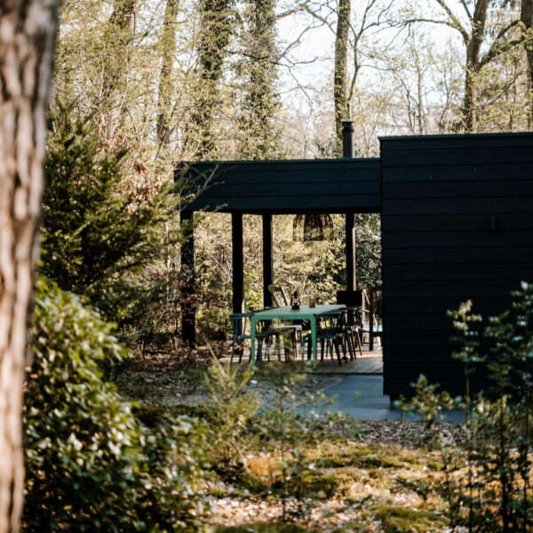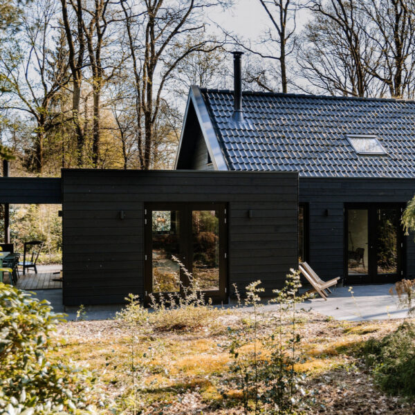 Boshuis Vroeg staat op een ruim perceel van 1000 m2, omringd door groen. Het zwarte huis oogt robuust en stoer van buiten. Door de grote ramen, de drie openslaande deuren en de natureltinten in het interieur is het huis opvallend licht van binnen. Een mooi contrast met de buitenkant. Wat ook direct opvalt, is de veranda met lange tafel en buitenkachel met pizza-oven. Voor velen een favoriete plek, heerlijk om hier je dag buiten nog even te verlengen. Ook in de woonkamer staat een houtkachel, met een ruime zithoek en een doorkijk naar de keuken met luxe extra’s als een Nespresso koffieapparaat, Quooker, twee koelkasten, vaatwasser en eethoek met grote eettafel. Het design boshuis heeft twee badkamers en vier slaapkamers. Het huis is daardoor ideaal voor bijvoorbeeld twee gezinnen of om opa en oma mee te nemen voor een weekendje weg of vakantie.