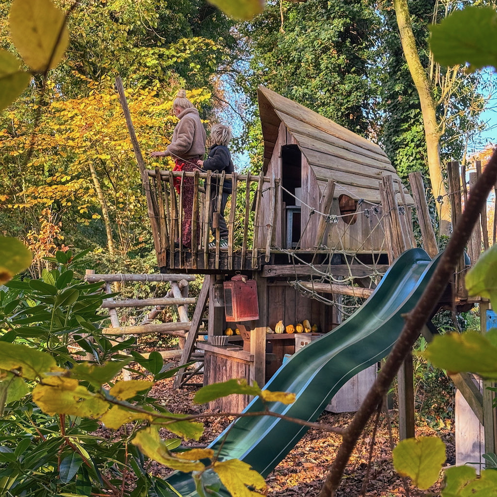 De tuin van BuitenBeleven is een (speel)paradijs. Vroeger stond er een oud houten huisje op de plek waar nu boshuis BuitenBeleven staat. Van dat huisje is een stoere boomhut gemaakt, de favoriete plek voor kinderen. Daarnaast is er een speelplek, een vuurplaats en zijn er meerdere zitjes in de vorm van een stoere picknicktafel en beach chairs. Perfect om buiten te leven en te beleven.