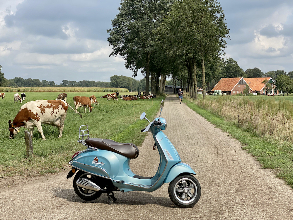 ‘Ontspan je lichaam, schouders los, hoofd leeg en gaaaaan!’ Met deze woorden word je op pad gestuurd. Je hoofd legen gaat als vanzelf. Je hoeft nergens over na te denken want de routes zijn al voor je uitgezet. De eigenaar van Motorette Vespa Verhuur kent de omgeving als geen ander en heeft de meest fotogenieke wegen en paadjes al voor je ontdekt. Je rijdt via het uitgebreide knooppunten netwerk en komt met je Vespa langs de mooiste plekjes in de Achterhoek. Al slingerend over landweggetjes langs boerderijen, weilanden en akkers, over smalle bospaadjes door prachtige natuurgebieden en langs idyllische dorpjes en vestingstadjes als Bredevoort en Groenlo.