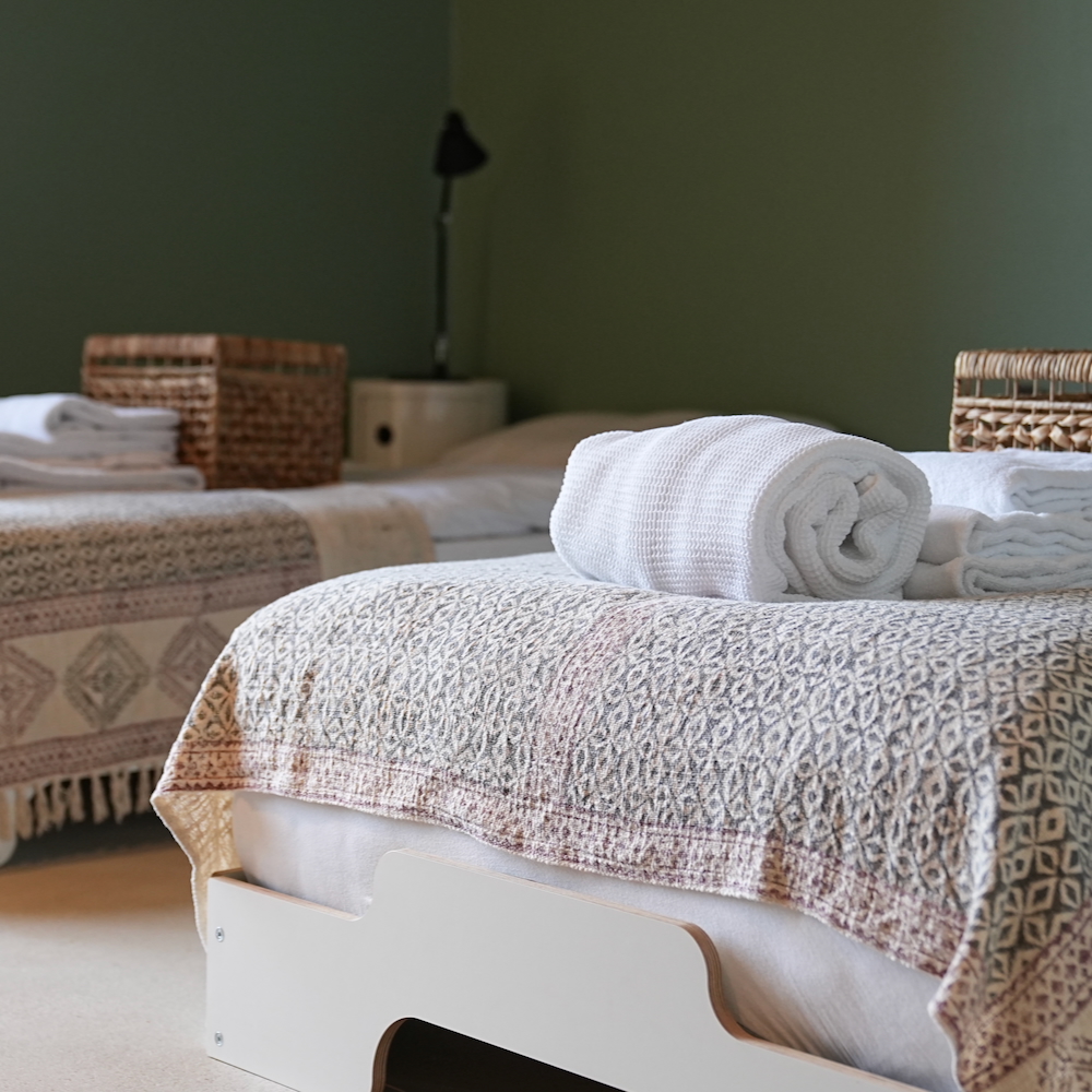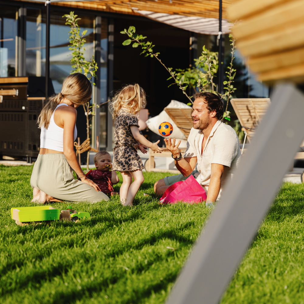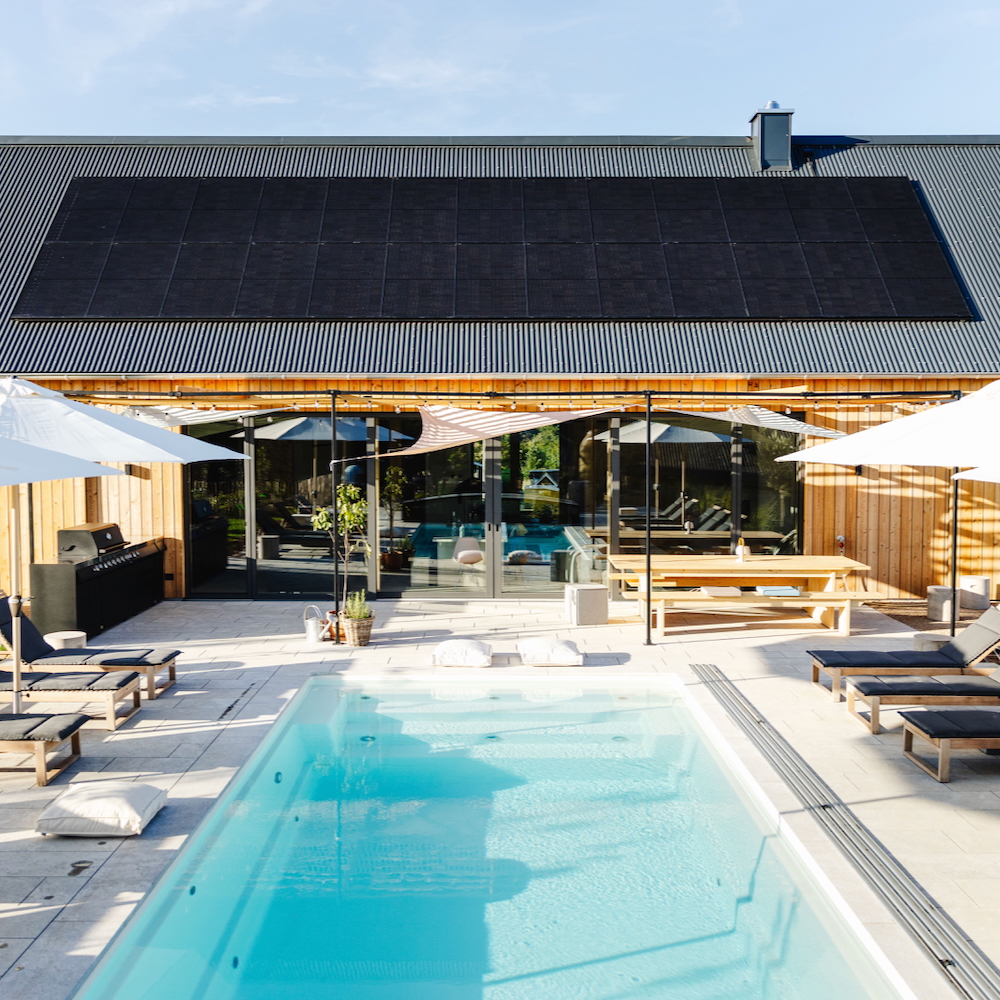 Bij Das Farmhaus leef en slaap je royaal: het vakantiehuis is ruim, biedt veel comfort en is doordacht ingericht. De zes modulaire slaapkamers kun je flexibel indelen, ze bieden plek aan maximaal 14 gasten. Eén slaapkamer met badkamer is rolstoelvriendelijk; ook een groot gedeelte van de begane grond en de tuin zijn drempelvrij. De slaapkamers en de drie badkamers liggen rond een open woonruimte met keuken en lange eettafel. De hotelwaardige keuken (stoomoven, grote koelkast, wijnkoeler en uitgebreide uitrusting) maakt samen koken een feestje. Vloerverwarming en airconditioning maken het af. Binnen is er ook een privé cinema (groot scherm, goede sound) en een multifunctionele ruimte voor yoga, een workout of om te werken. Kom je met kinderen bij Das Farmhaus? Er zijn kinderbedjes, babybedjes, kinderstoelen, traphekjes en veel speelgoed voor jong en oud. Aan werkelijk alles is gedacht. Zelfs aan een binnenglijbaan, een klimwand en speeltoestellen in de tuin. Buiten vind je een buitenkeuken met grote BBQ, loungehoeken en een kas met een zitje tussen de kruiden en groenten. Je beschikt over een eigen sauna (IgluCraft, met relaxruimte en douche), een whirlpool, een (overdekt) zwembad met ligbedden, parasols en een vuurplek voor lange avonden. Zie je jezelf al genieten?