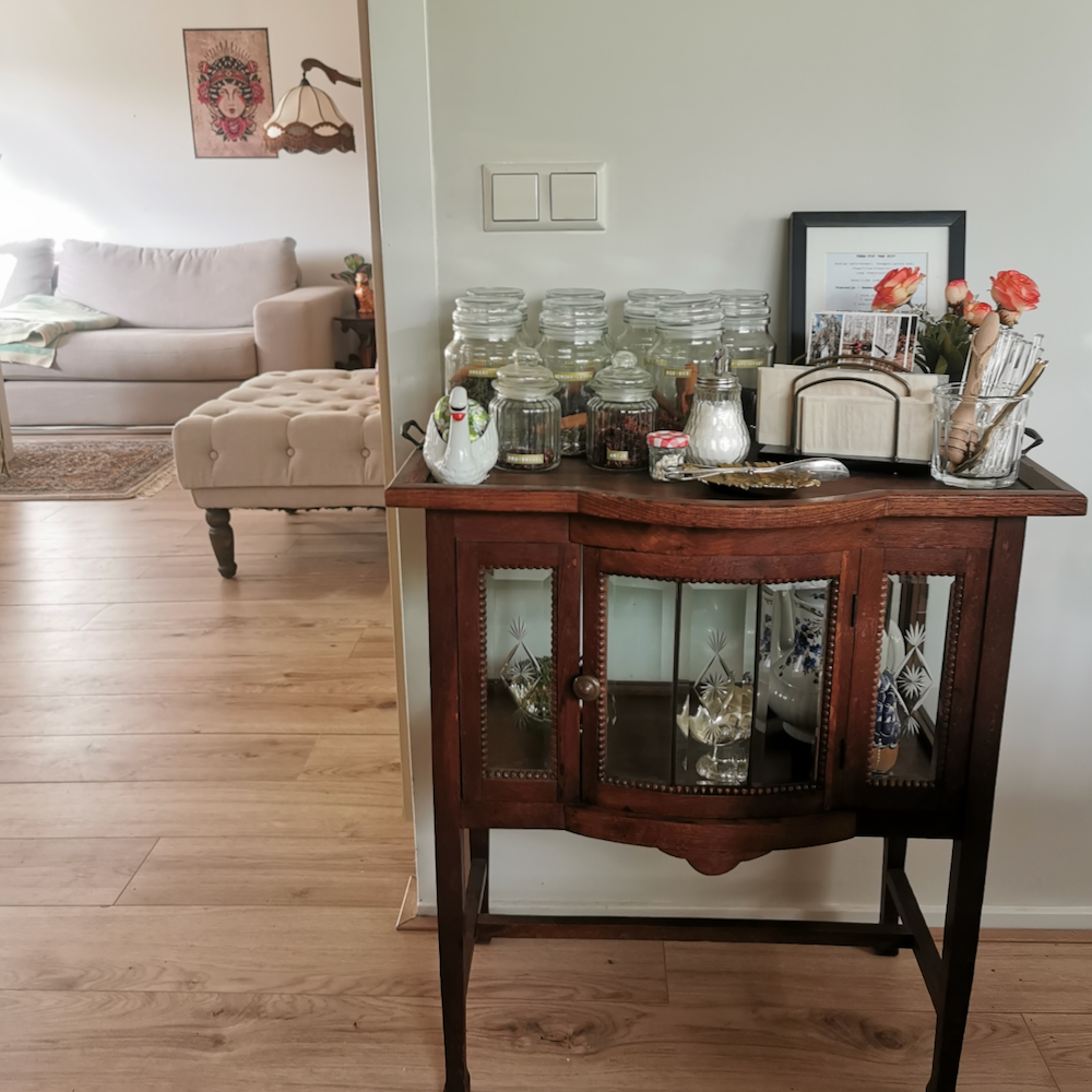 De gezellige woonkamer is, net als de rest van het huis, ingericht met warme tinten en meubelen van vroeger. Een sfeervolle, karakteristieke plek met een zithoek, eettafel, bar, televisie, muziekinstallatie en spelletjes. Dat wordt samen plaatjes draaien! De ruime keuken is uitgerust met alles wat je nodig hebt om een uitgebreid (of simpel) diner op tafel te zetten, waar je op een mooie zomerdag gezellig buiten op het terras van kunt genieten.