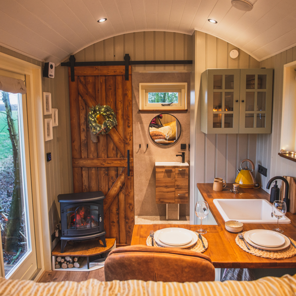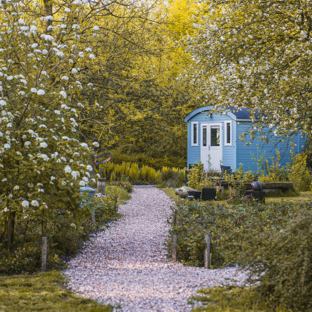 Vanaf het moment dat je met je auto de meanderende oprijlaan oprijdt, besef je dat je niet zomaar ergens bent belandt. Verstopt tussen de rijke begroeiing van de tuin hebben drie unieke herderswagens een plekje gevonden. Slingerende schelpenpaadjes leiden je naar de lichtblauwe Gritstone met uitzicht op de dierenweide, de okergele Wensleydale waarvandaan je prachtig over de weilanden kunt turen óf naar donkerrode Herdwick, waar de koeien nooit te beroerd zijn hun nieuwe buren te verwelkomen.
