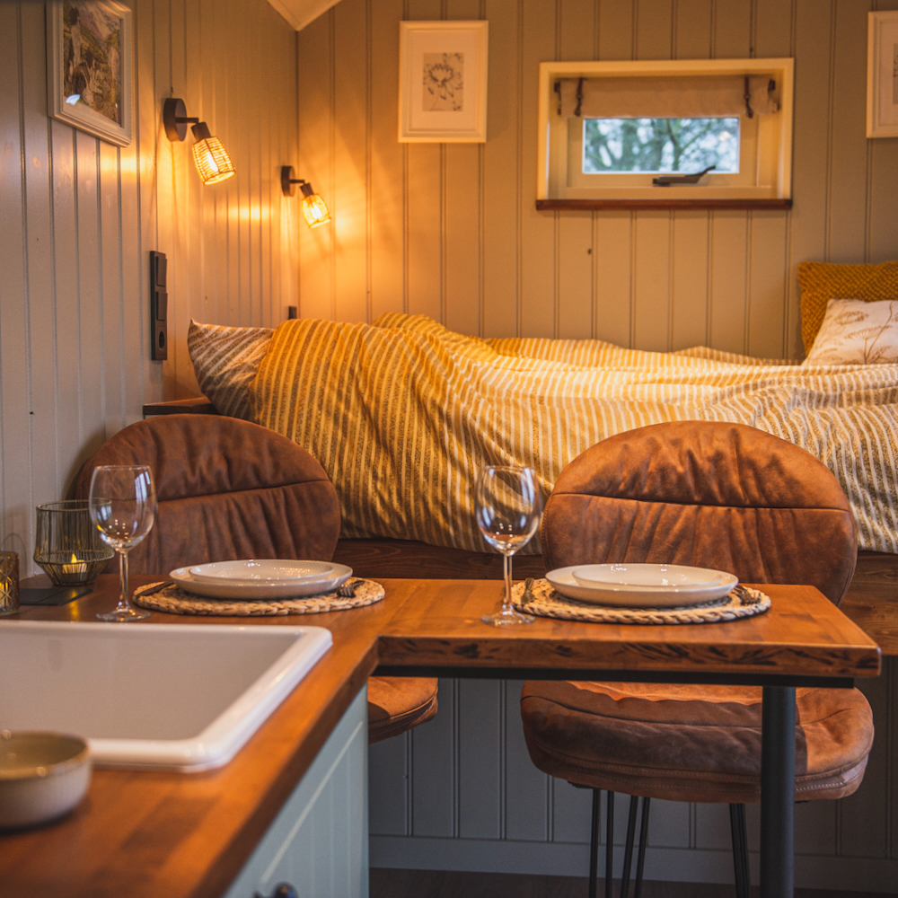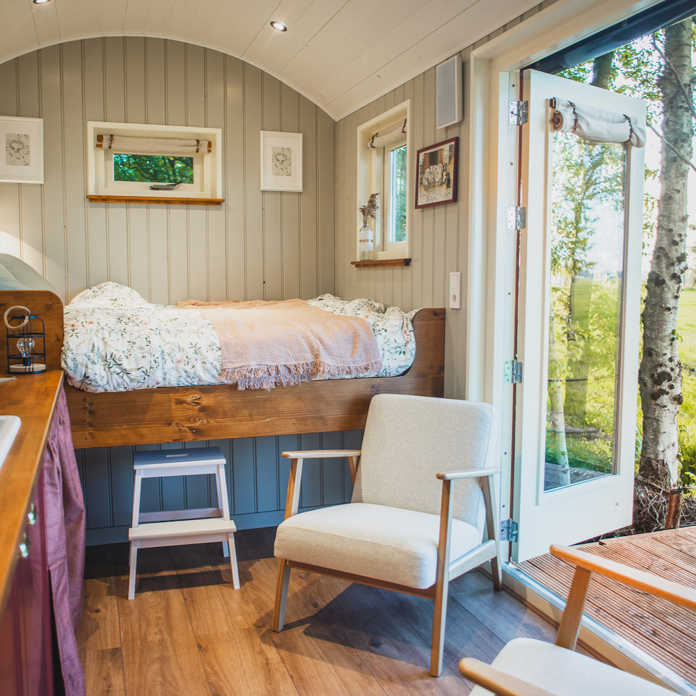 Deze Engelse Herderswagens in het bosrijke landschap van Zuidoost Friesland zijn niet zomaar huisjes. Het ontwerp is gebaseerd op de traditionele Engelse Shepherd’s Hut, maar dan met al het comfort van nu en genesteld in een idyllische parktuin. Verken de prachtige, diverse omgeving, scharrel met de kippen mee door de tuin of verlies jezelf in een knetterend kampvuur onder de vallende avond.