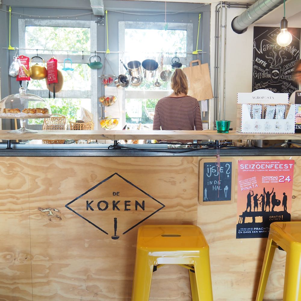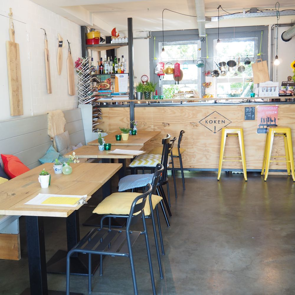 De locatie van De Koken is verrassend; een beetje verstopt in de jachthaven met camping. Hoe kom je hier terecht zou je denken. Niet zo moeilijk, Maartje vond hier de liefde van haar leven tijdens een dagje sloepvaren. Het was liefde op het eerste gezicht voor Jelmer, een van de eigenaren van de jachthaven. Liefde op het eerste gezicht was het ook voor de appeltaart die Maartje de gasten van de jachthaven voorschotelde. Vanuit die liefde is De Koken ontstaan! Een fijne plek, waar je eenmaal neergestreken, niet zo snel meer weggaat. Neem plaats in de loungehoek, de hangstoel, de beach chairs of ontspan in de hangmat met zicht op de boten. Slecht weer? Helemaal niet erg, ook binnen is het heel leuk!
