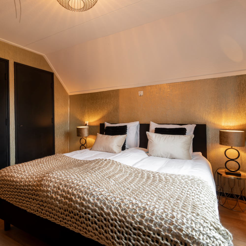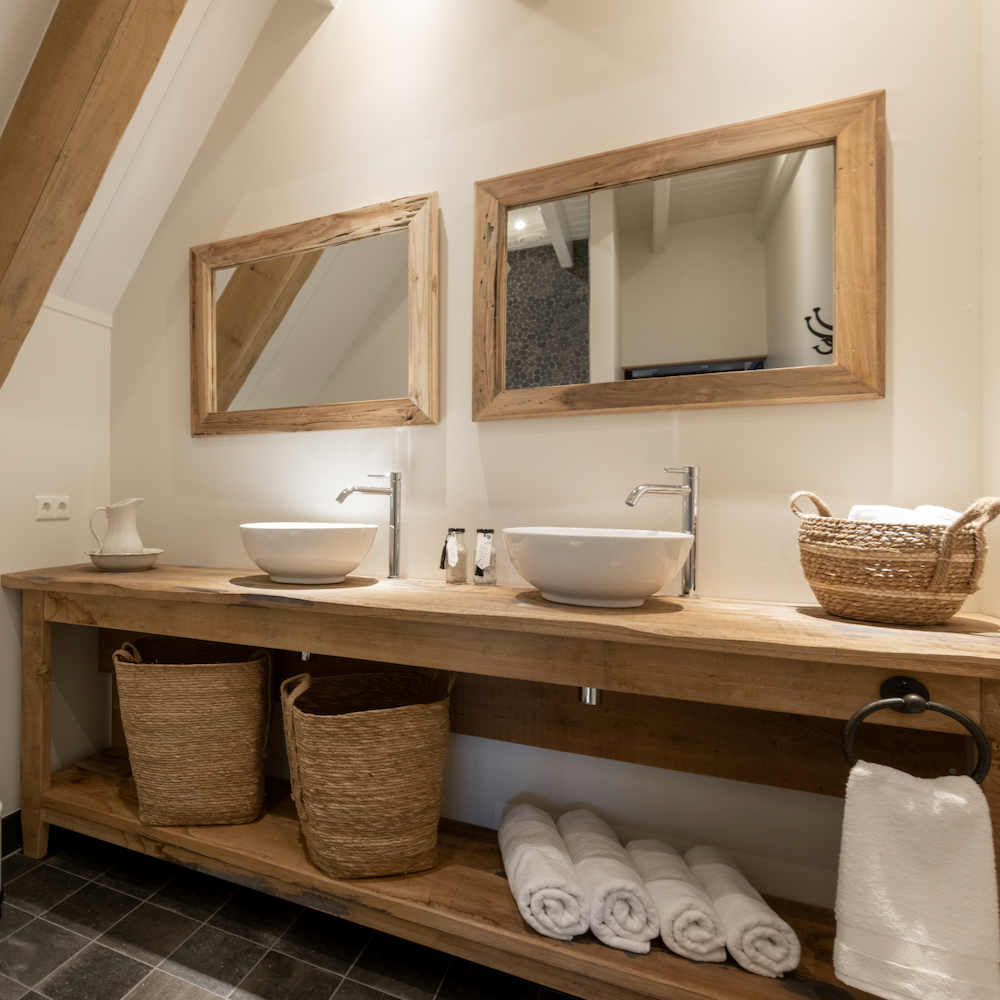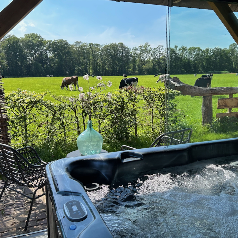 Vakantiehuis Bie Sien, in het voorhuis van de boerderij, biedt plaats aan 16 volwassenen en vijf kleine kinderen. Zie je je al zitten in de boerenkeuken met de enorme tafel of bij de vuurplaats in de tuin, samen mooie herinneringen maken? De slaapkamers en grote badkamers liggen verspreid over de boven- en benedenverdieping. Er zijn twee bedstedes, zo leuk! De wellness van Bie Sien bevindt zich in de monumentale bakspieker met een sauna, een ligbad, een grote regendouche, een heerlijke relaxruimte en een houtgestookte hottub buiten op de vlonder met uitzicht op de koeien in de wei.