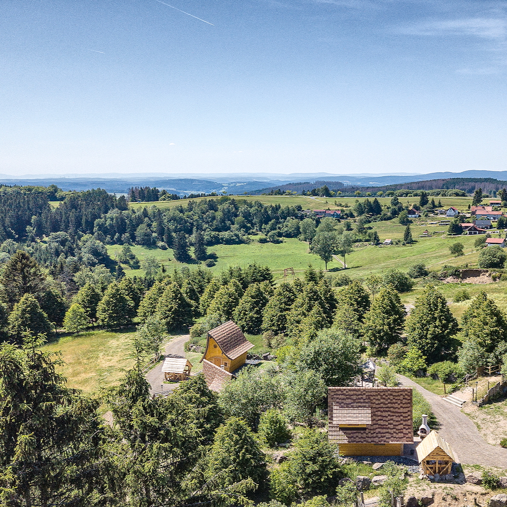 Kies je voor een Erdhäuser (aardehuisje) voor 2-4 personen of een Hexenhäuser (heksenhuisje) voor 2-4 personen? De aardehuizen zijn de blikvangers van het terrein. Ronde huisjes die half in de grond zijn gebouwd en van binnen verrassend ruim aanvoelen. Met ongeveer 45 m² bieden ze plek aan twee tot vier personen. De inrichting met veel hout, ronde vormen en natuurlijke materialen zorgt direct voor een huiselijk gevoel. Er is een aparte slaapkamer met tweepersoonsbed en een stapelbed, een woonkamer met zithoek en een houtkachel voor de gezelligheid. Daarnaast vind je er een moderne badkamer, koelkast, waterkoker, tv en een eigen terras buiten. Zelf koken is hier niet mogelijk, maar dat maakt het juist extra ontspannen. ’s Ochtends schuif je aan in de Bergbaude voor een uitgebreid ontbijt met vers huisgemaakt brood en streekproducten. Ook later op de dag ben je bij Bergbaude, op het terras of in het restaurant, van harte welkom voor een smakelijke maaltijd.