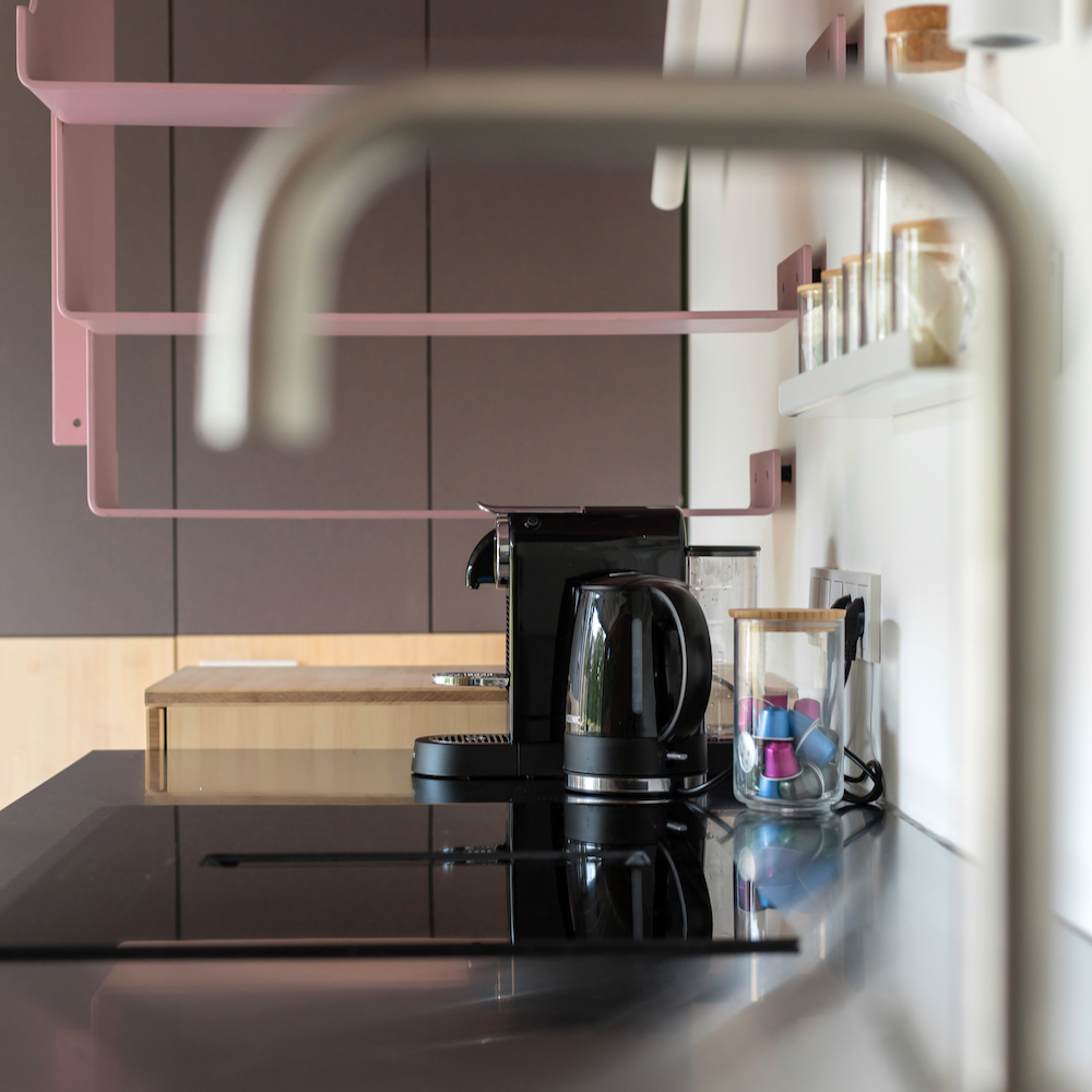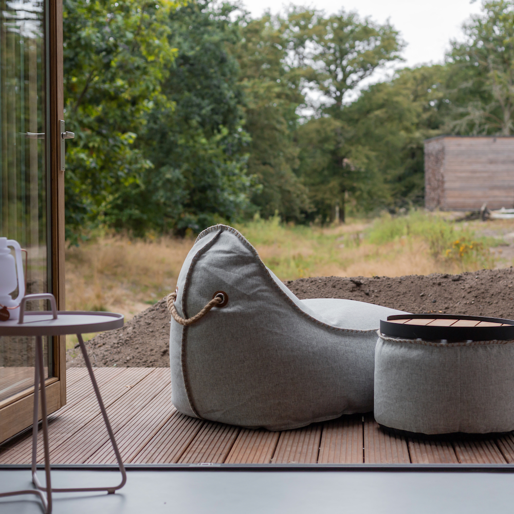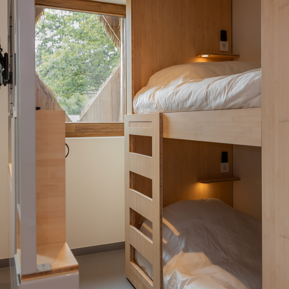 Het tiny house biedt plaats aan vier personen. De benedenverdieping bestaat uit één ruimte met de strakke keuken (met afwasmachine), een eethoek en een mobiele zithoek. Alles is zo ontworpen en met zorg samengesteld dat de aanwezige meubels ook buiten geplaatst kunnen worden. Op mooie dagen verplaats je binnen naar buiten om optimaal te genieten van het bos en de natuur. Op de eerste verdieping ligt de slaapkamer met een tweepersoons bed en een ingebouwd stapelbed. De kleine badkamer bestaat uit een douche en toilet. Er is een aparte wastafel. Verstopt onder de kap van de hooiberg op de bovenverdieping ligt het dakterras met een eettafel en loungehoek. Een heerlijke plek om samen te zijn, om je terug te trekken, om de natuur te beleven, om te borrelen…