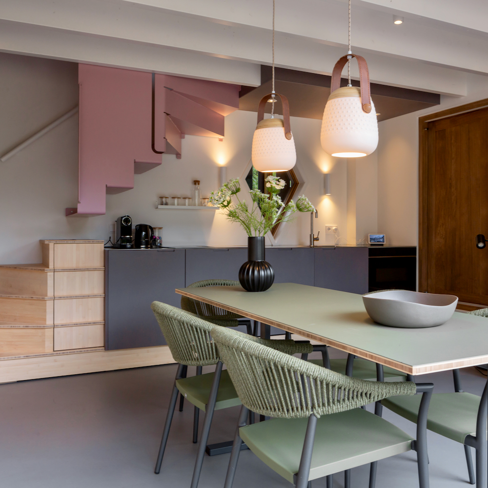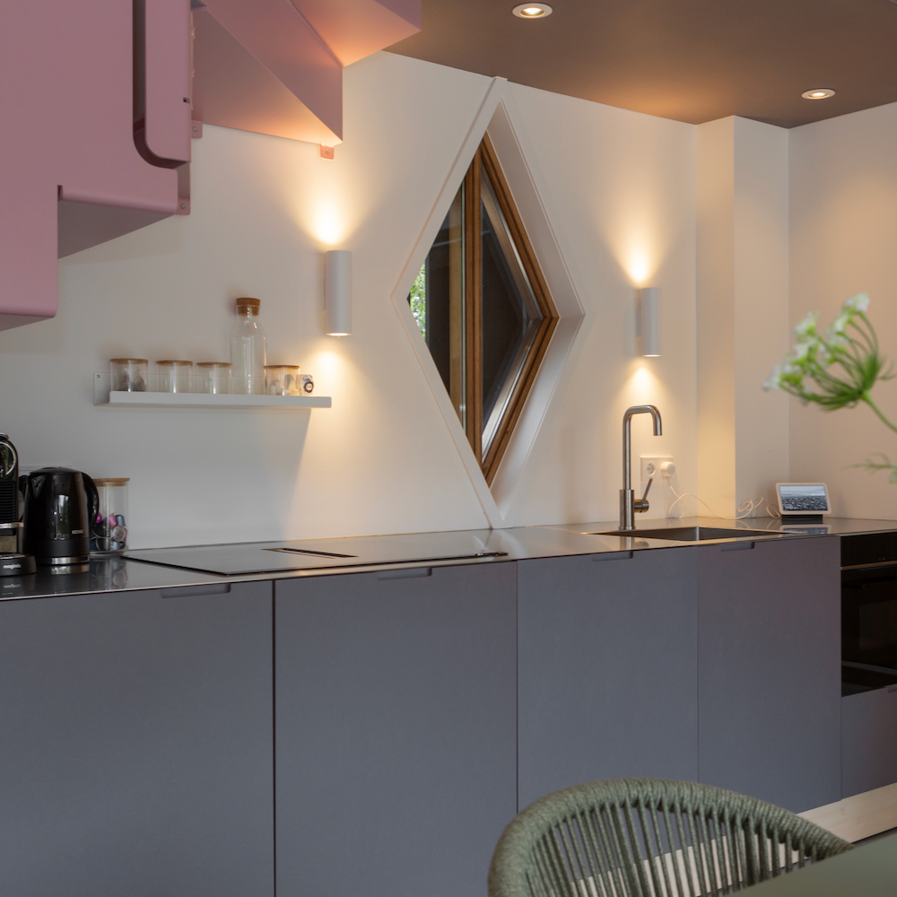 Folly de Hooimijt lijkt op het eerste gezicht een normale hooiberg, maar blijkt een tiny house vol vernuftigheden. Wanneer je kiest voor een verblijf in Folly de Hooimijt dan kies je voor een verblijf vol van verrassingen en ontdekkingen. Open bij aankomst een van de zijgevels en laat zo binnen in buiten doorlopen. Verbaas je over de hangende roze trap. Ontdek het ‘verstopte’ raam van de slaapkamer. Geniet op het verborgen dakterras en van het fantastische ontwerp van het vakantiehuis. Over elke ruimte en elke hoek is zo goed nagedacht! Je blijft je verwonderen, niets is wat het lijkt.