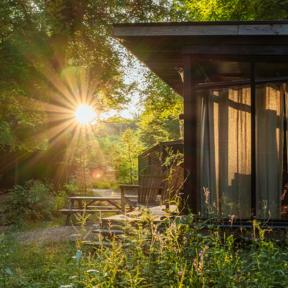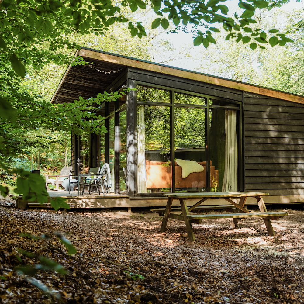 De Forest Cabins van Buitenplaats Beekhuizen zijn uniek in Nederland. De 4-persoons huisjes staan niet alleen op een unieke locatie, ze zijn ook gebouwd naar eigen ontwerp. Een bewust en goed doordacht concept, waarbij je binnen ook het gevoel hebt buiten te zijn. Door de grote ramen en het kleurgebruik in de cabins verblijf je in stijl in de natuur.