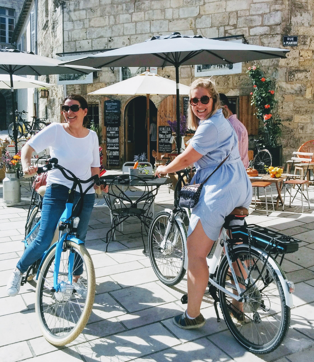 Hoewel het platteland met slaperige dorpjes lonkt, is Perigueux een stad die je niet mag overslaan. Scheve huizen met blauwe luiken zijn tegen de heuvel aan geplakt. Maar vooral de statige kathedraal springt in het oog. Op het kerkplein is er op zaterdagmorgen een warenmarkt. Als je die (net als ik) mist, geen nood! De Rue Limogeanne loopt als een culinaire ader door de stad. Hier vind je alles wat een bourgondisch hart maar wensen kan. Van chocolade tot wijn en van truffels tot foie gras. Nadat je inkopen hebt gedaan en sfeer hebt geproefd ga je koffie drinken op het kleurrijke terras van café Velo. Hier huur je (hoe toepasselijk) een hippe (elektrische) fiets. Vul je fietsmand en vervolg je reis langs de rivier. Picknick langs het water of strijk neer op het terras van Barnabé. Hier hangt zo’n fijn nostalgisch film sfeertje dat je, als je je ogen sluit, de vogelgeluiden langzaam hoort versmelten met jazz klanken en stoere heren mooie Franse dames het hof ziet maken. Een dagdroom die bij het openen van je ogen geen droom blijkt te zijn…