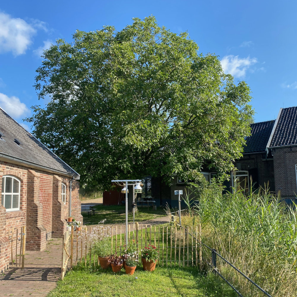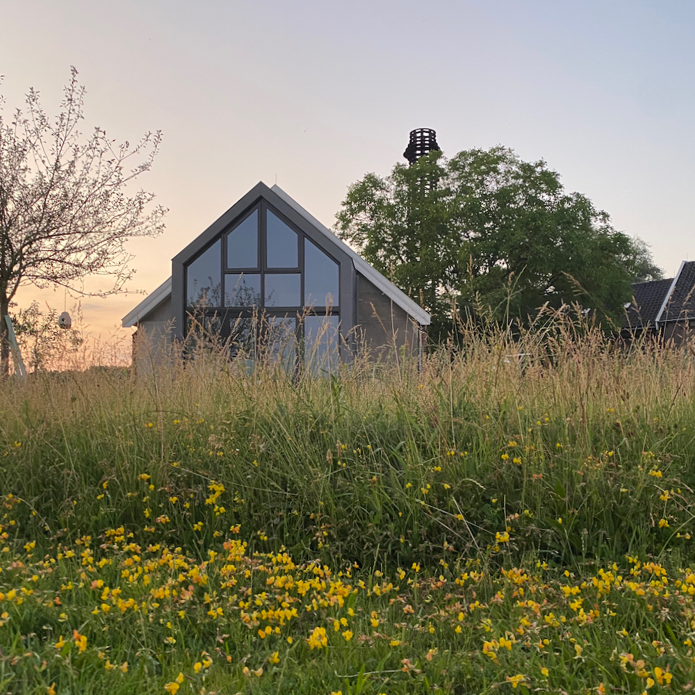 Het vakantiehuis ligt op het erf van Gemaal Oude Rijn. Door de ligging van het huisje aan de achterzijde van de veldschuur heb je veel privacy en veel ruimte om je heen. Met een eigen terras en verschillende zitjes in het gras zodat je op elk moment van de dag kunt kiezen voor een ander uitzicht. Strijk neer aan de waterkant als de zon ondergaat. Elke dag een ander uitzicht