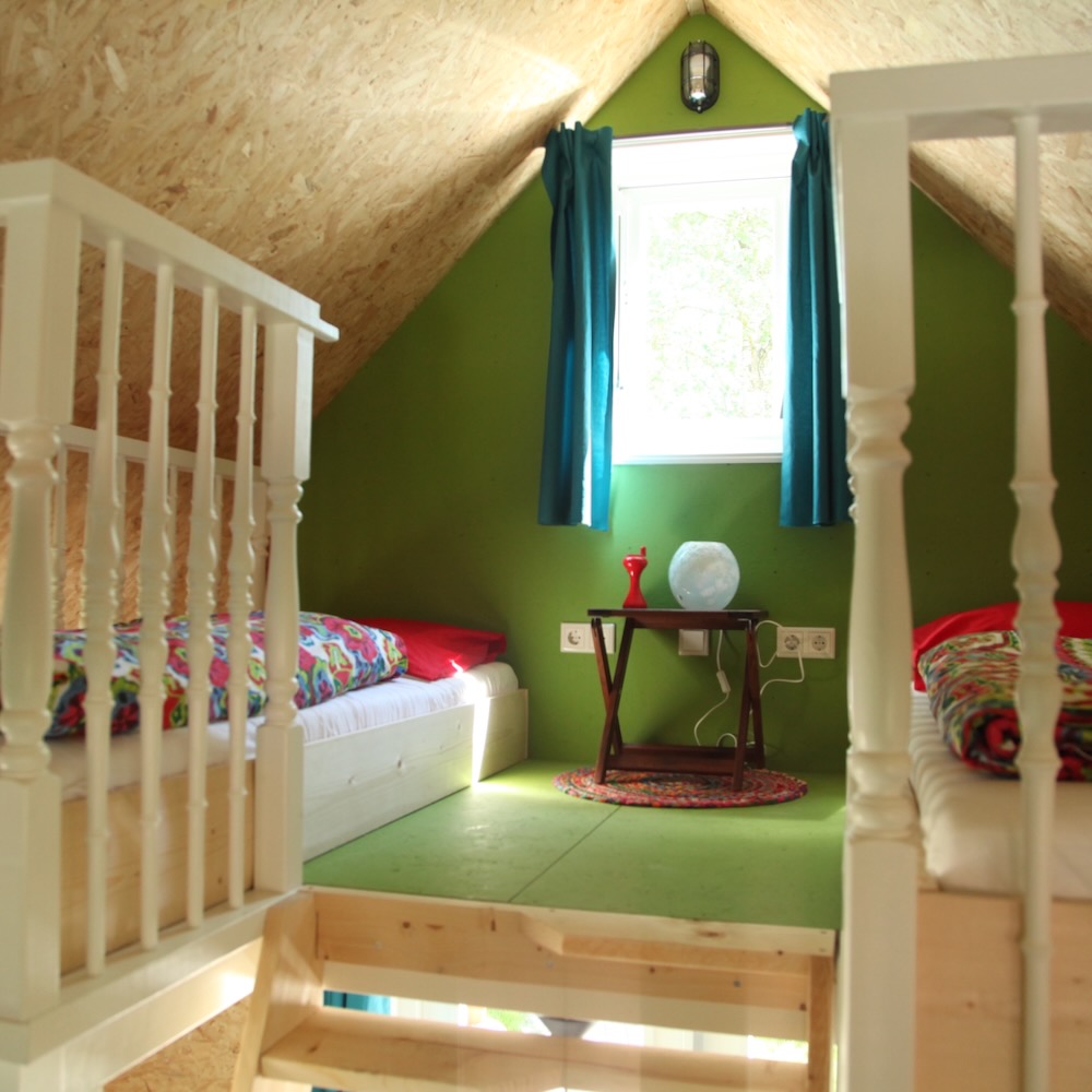 Liever in een huisje vakantie vieren? De ecolodge is gebouwd met duurzame materialen en biedt ruimte aan maximaal vier personen. Op de begane grond bevindt zich een riant tweepersoonsbed en op de vide twee eenpersoonsbedden. De gehele lodge heeft vloerverwarming. Op het terrein van Aan het Diepje vind je een zandbak en trampoline, verse eitjes van eigen kippen (zelf te rapen) en groenten en kruiden uit de moestuin (zelf te oogsten).