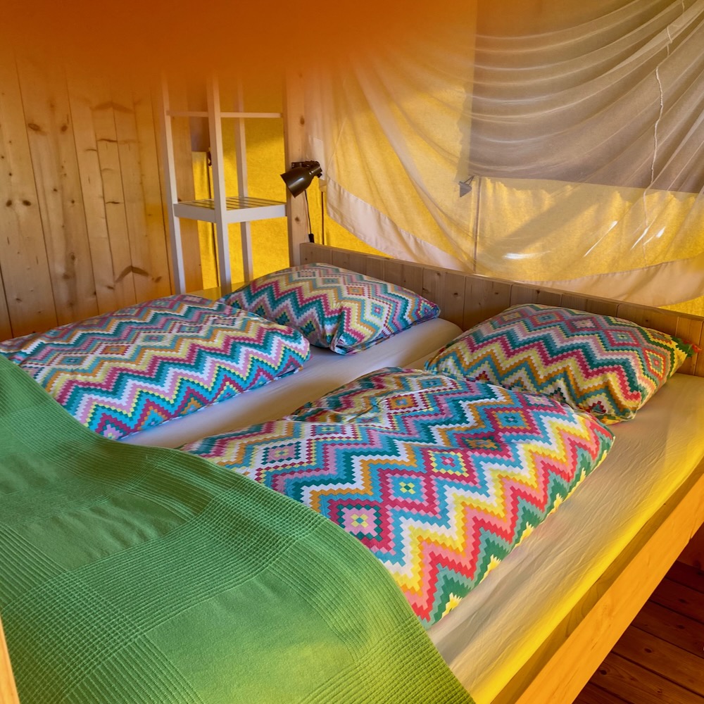 Wie vakantie komt vieren bij Aan het Diepje heeft de keuze uit drie safaritenten. In de safaritenten, geschikt voor 4 personen, vind je alles wat je nodig hebt. In de slaapkamers staan comfortabele bedden en in de woonkamer heb je een compleet ingerichte keuken, eettafel met bank en stoelen en pelletkachel voor de koudere dagen. Aan de voorkant van de tenten is een terras aangelegd met picknicktafel, luie stoelen en barbecue. In ’t Badhoes is er voor elke accommodatie een privé badkamer beschikbaar. Verder vind je hier ook een wasmachine, droger, strijkplank en strijkijzer voor gezamenlijk gebruik.