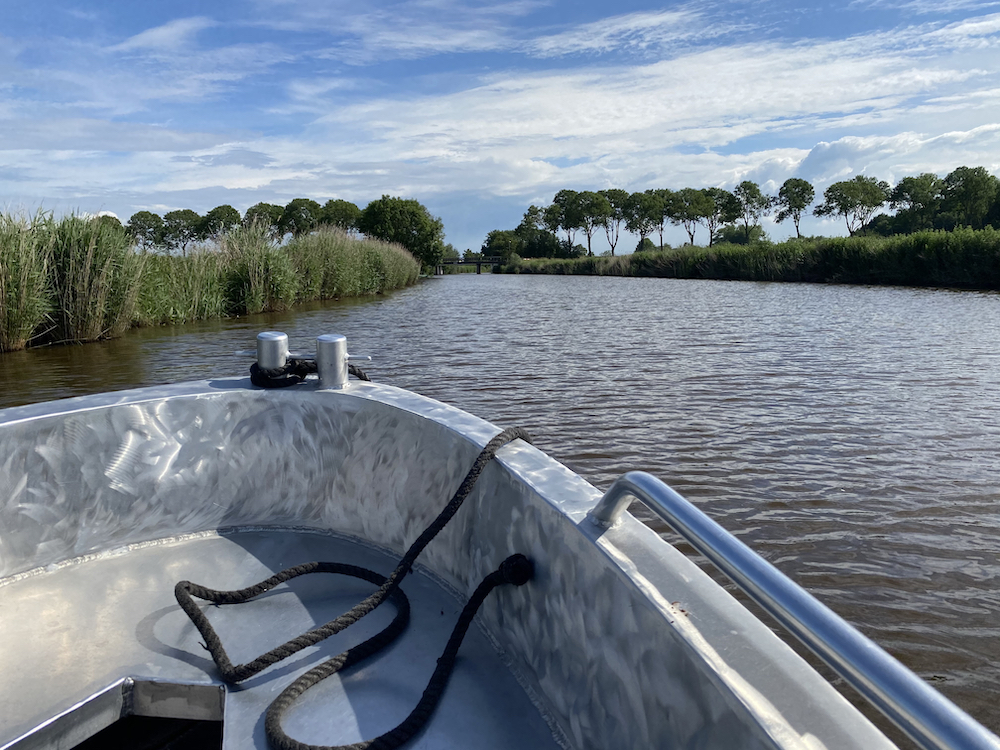 Rust, ruimte en schone lucht in Wehe-Den Hoorn: ervaar het tijdens een Hogelandstertocht. Huur voor een uur, een ochtend of middag een Marenboot bij Café Hoornstertil. Vaar over het rustige Reitdiep richting Schouwerzijl en ga op zoek naar het mooiste Grunniger picknickplekje. Of kies voor een tocht over de Hoornstervaart richting Borg Verhildersum. Werp een blik op de bronzen blote vrouwen in de borgtuin of ga gewoon toeven op het terras van Ons Schathoes. Vergeet niet een lunchsalade te bestellen, verser dan vers uit eigen moestuin.