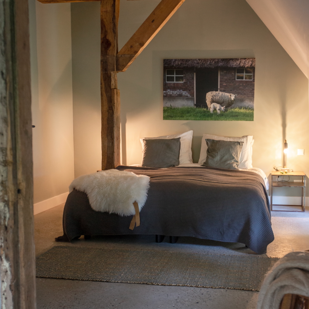 Alleen al voor het gevoel helemaal weg van alles te zijn (je hebt hier ook geen WiFi), wil je naar deze mooie hoeve met het sfeervolle warme interieur. En dan blijkt de omgeving ook nog eens zo bijzonder mooi: in het Vechtdal! Vanuit de boerderij kijk je uit over de weilanden waar koeien grazen. Maak een wandeling over Landgoed Eerde en bewonder het gelijknamige kasteel. Ga eens vroeg in de ochtend aan de wandel en maak kans op het zien van reeën. Wat hier ook heel bijzonder is, is de rivier die dwars door het bos slingert. Dat zie je op maar weinig plekken in Nederland. Met een kano kun je op je gemak over de Regge peddelen. Als je heel stil bent, zie je misschien een ijsvogel.