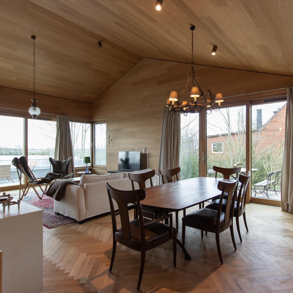 - IDAHO – Bovenetage (ca. 100 m², voor 2 personen): een royale verdieping met eiken visgraat vloer, een maatwerkkeuken met natuursteen, een badkamer met inloopdouche én vrijstaand bad en een groot balkon met uitzicht op de Eider.