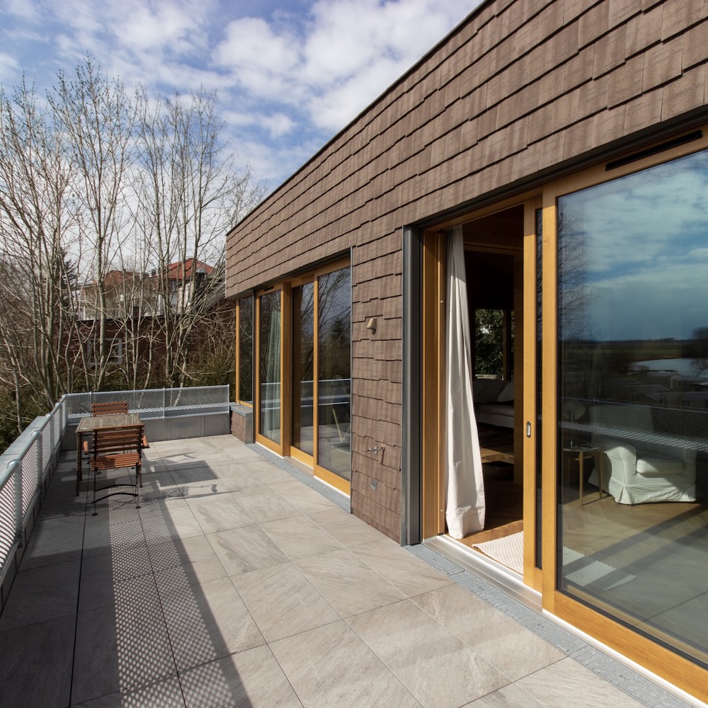 Per etage: een volwaardige keuken, een eigen badkamer, wifi en smart-tv. Boven een ruim balkon, beneden een terras met tuin. Parkeren bij het huis, laadpaal. - Zijn honden welkom?