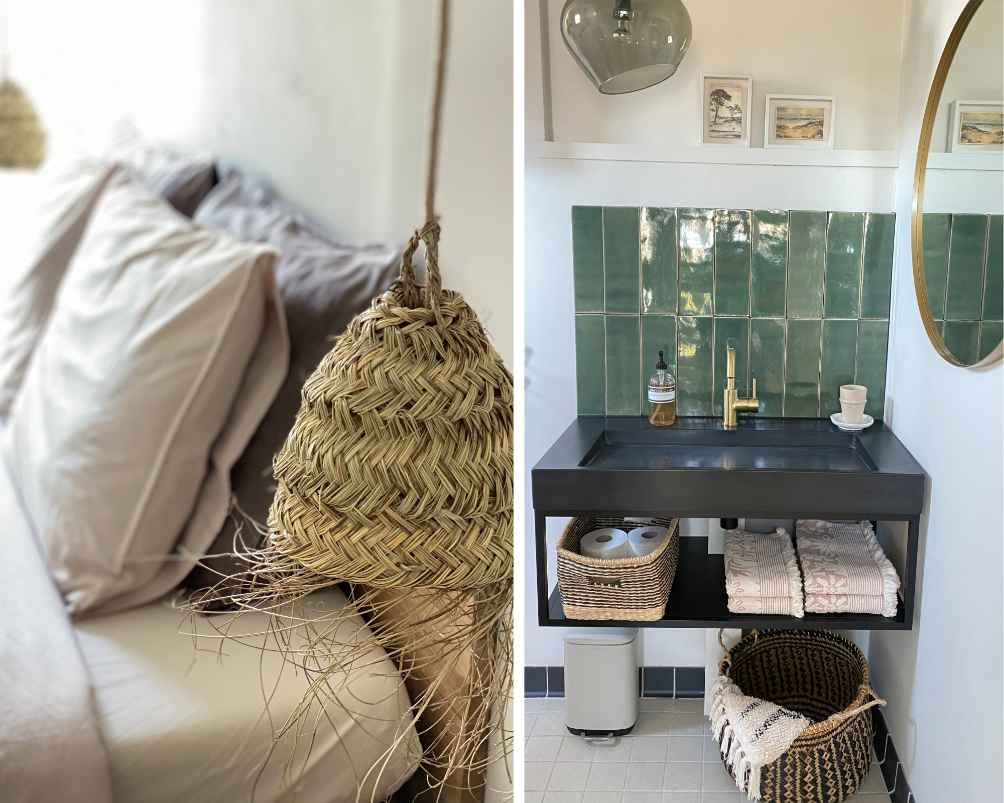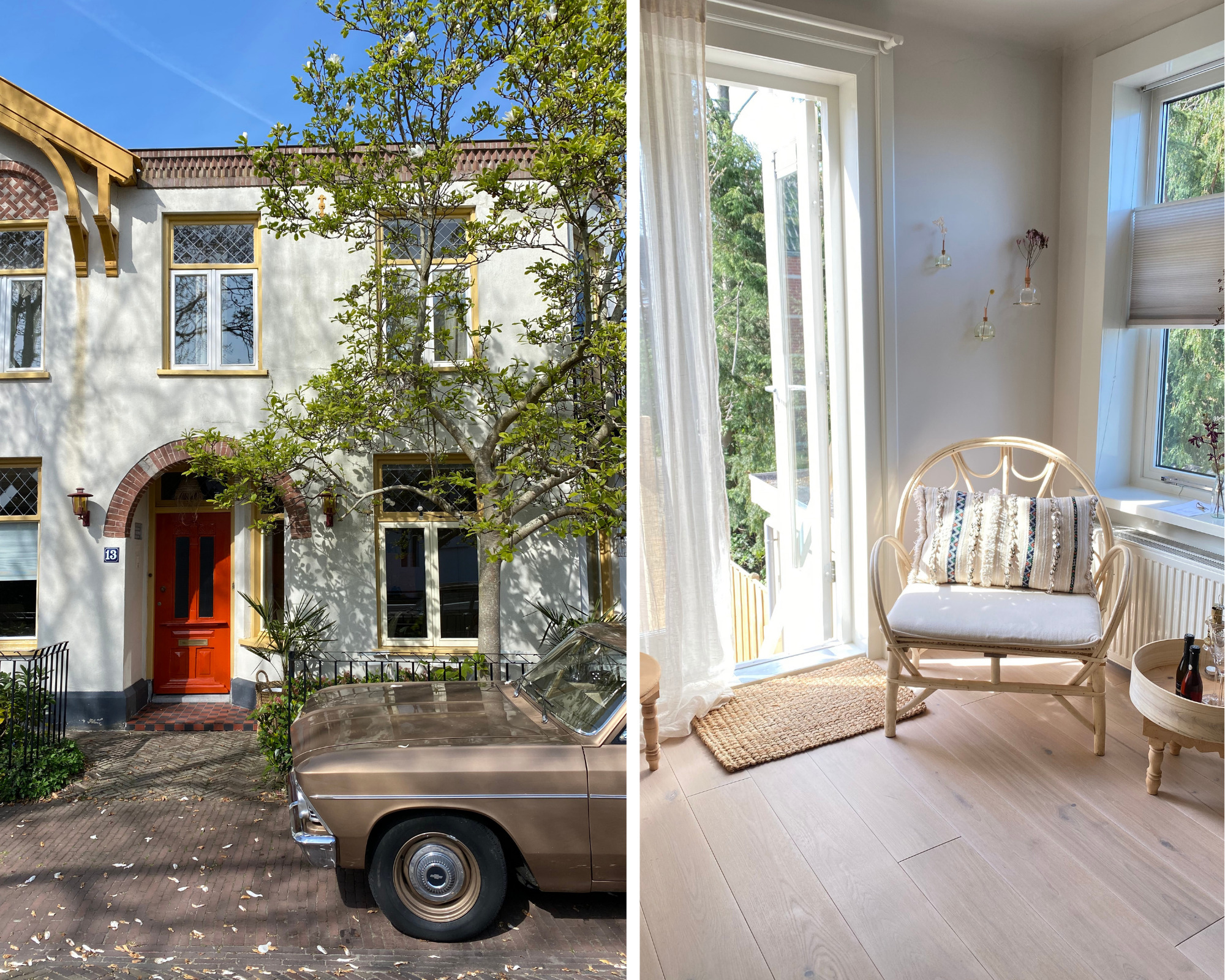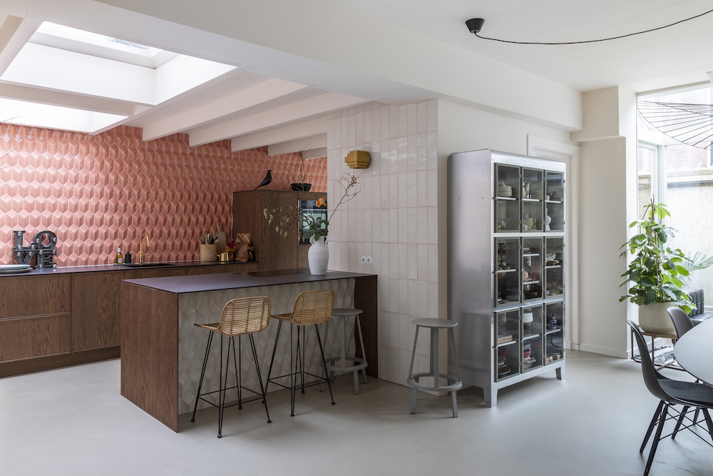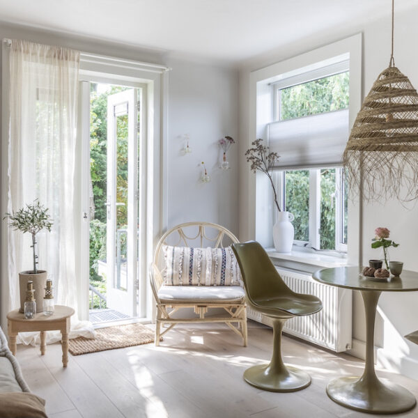 De verbouwing werd gestart, scheve vloeren en muren werden rechtgetrokken (‘Het was zo scheef, ik werd er bijna zeeziek van’, vertelt Isi), muren doorgebroken en weer dichtgemaakt, meters wanden in zachte kleuren geschilderd en oude elementen zorgvuldig bewaard. Opvallend zijn de handgemaakte roze en groene wandtegels, geïmporteerd vanuit Portugal. Om ze te kunnen plaatsen was een speciale tegelzetter nodig. Handwerk en vakwerk, eyecatchers in huis én in de appartementen. Materialen, elementen en accessoires uit hun eigen huis kregen ook een plekje in de appartementen. Diezelfde tegels aan de wand, in Magnolia Tree ook een Jotul houtkacheltje en in beide appartementen een kleine versie van de vtwonen keuken. Meubels en accessoires van o.a. Household Hardware, HK Living en L’Etoile Conceptstore vonden hun weg naar de 2-persoons woningen. De rustige en stijlvolle basis is aangevuld met trendy elementen, die met de tijd mee gaan. Niet alles is nieuw, het servies bijvoorbeeld bestaat uit een mix van vintage borden en glazen in combinatie met HK Living en Sissy Boy. De lichte meubels en rieten lampenkappen zorgen voor dat instant vakantiegevoel. De palmboom voor de ingang bij Palm Tree geeft je het laatste zetje.