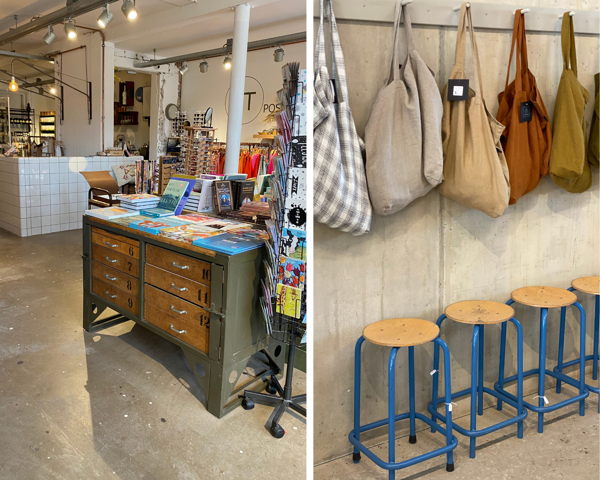 - Conceptstore PT Post in het oude postkantoor is een aanrader. Unieke kleding, cadeaus, mooie boeken en sieraden. Hier kan je rondkijken en elke keer iets nieuws ontdekken. – Oude Prinsweg 23, Bergen