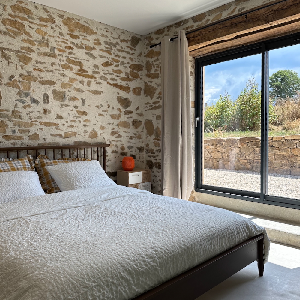 Gîte Le Verger is al net zo’n heerlijk vakantiehuis, gelegen bij een kleine boomgaard. Een plek waar je ’s ochtends wakker wordt met de eerste zonnestralen op het terras, en ’s avonds geniet van zwoele buitenavonden, een goed glas wijn en een indrukwekkende sterrenhemel. Binnen wacht een lichte, stijlvolle gîte met authentieke stenen muren en een eigentijds interieur. De leefruimte heeft een imposant raam tot in de nok en een gezellige zithoek bij de houtkachel. De open keuken is perfect uitgerust voor culinaire uitspattingen – of je schuift lekker aan bij de table d’hôtes die één avond per week wordt verzorgd.