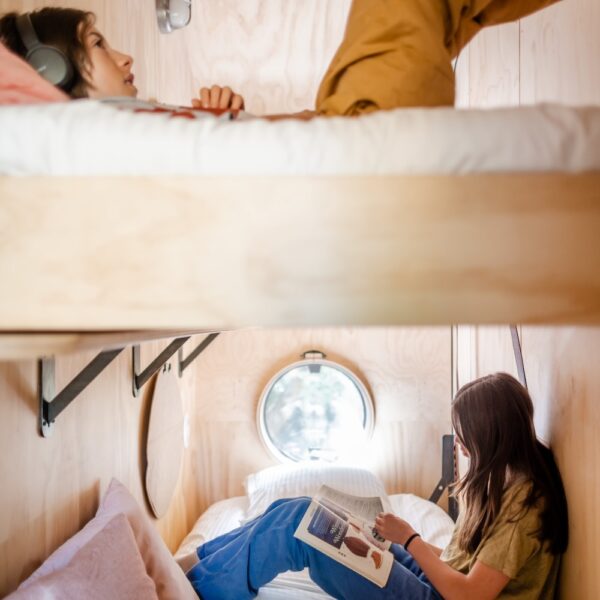 Les Cabanes d’Ostende is een secret garden midden in de stad Oostende, op slechts een steenworp van het strand. Je verblijft in een van de Wikkelhouses, uniek ontworpen cabins die praktisch en slim ingedeeld zijn, voor koppels én gezinnen (max 6 personen). Je hond is ook welkom! De cabins (bekroond als ’s werelds mooiste) zijn zo ingedeeld dat ze romantisch zijn als je samen komt en genoeg slaapplekken hebben voor als je met je kinderen komt. Naast het XL-tweepersoonsbed van Auping zijn er inklapbare stapelbedden aanwezig.