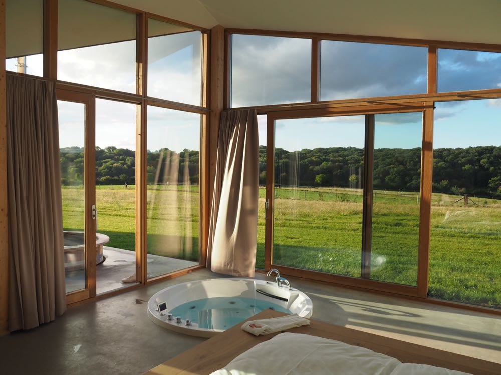 Voordat ik mijn logeerplek had gezien, had ik veel plannen. Een mooie wandeling maken, nog wat werken, een boek lezen, de omgeving verkennen. Ter plekke vergeet ik spontaan alles en doe ik niets anders dan badderen, bubbelen en naar het uitzicht staren… Dit is het ultieme ontspannen!