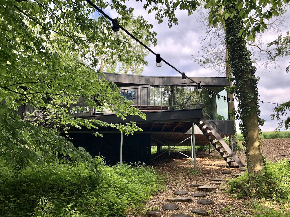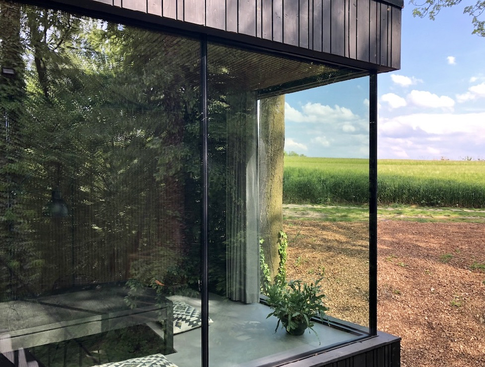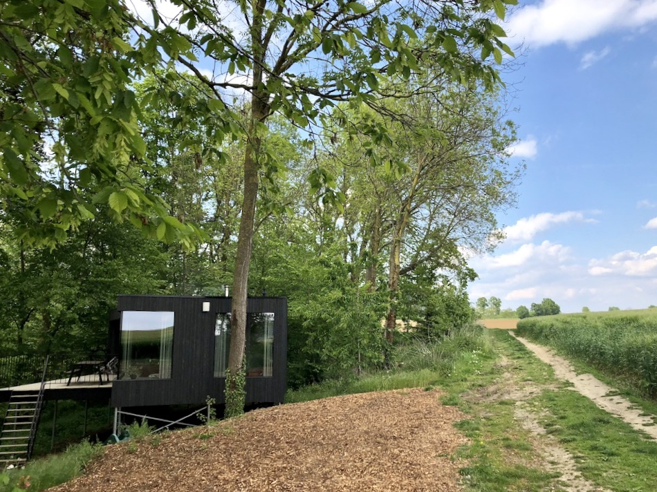 Wanneer we vanaf Maastricht richting Hoeselt rijden, worden de wegen steeds smaller. Door een licht glooiend landschap volgen we landweggetjes, die langzaam overgaan in een onverharde weg. Het is maar goed dat eigenaresse Ine ons verteld heeft over de laatste twee kilometers van de route. We passeren een klein domein met allerlei vakantiehuizen en nadat het laatste huis uit zicht verdwenen is, rijden we tussen de bomen door naar Loof. Nog een paar treden en dan staan we oog in oog met het design van de 2-persoons cabin. Een complete verrassing na het passeren van de andere chalets! Vol bewondering betreden we het bijzondere vakantiehuis aan de rand van bos en akkers, de oh’s en ah’s zijn niet van de lucht. Dit huis is à la minute een van mijn favoriete bijzondere plekjes.