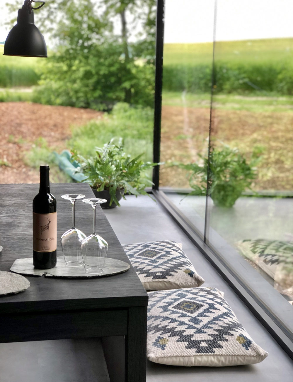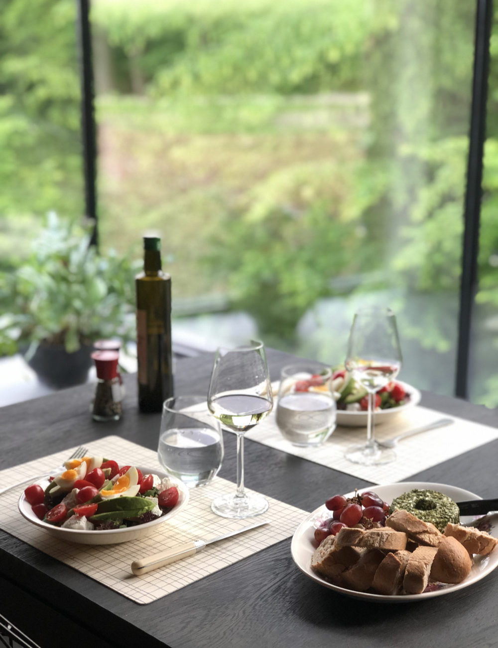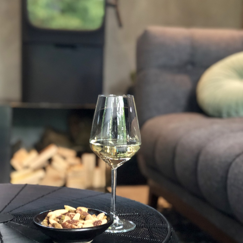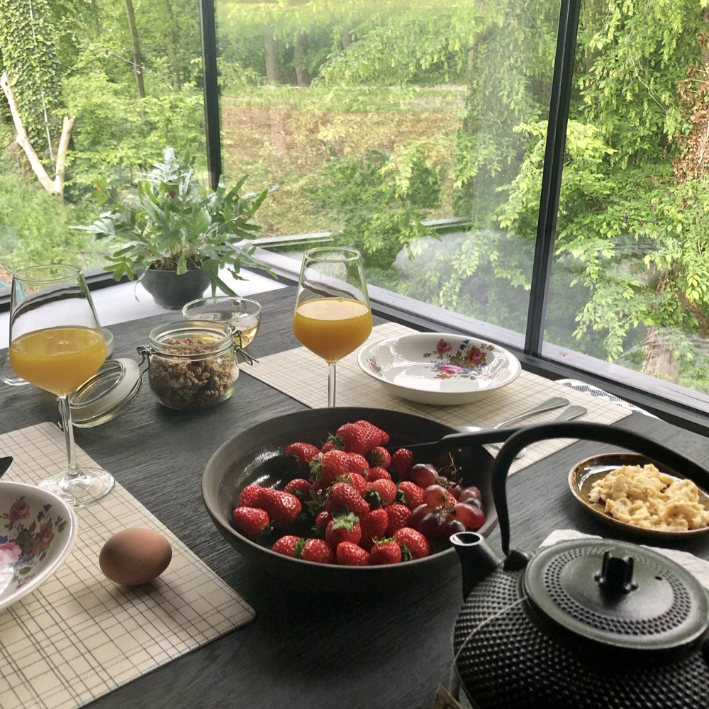 Van Ine horen we dat restaurants niet om de hoek liggen. Loof ligt nogal afgelegen, voor een goed restaurant rijd je al snel 15 tot 25 minuten. Geen nood, we besluiten te cocoonen en nemen boodschappen mee om het mooie huis niet meer uit te hoeven, behalve voor een wandeling in de directe omgeving. De keuken van Loof is volledig uitgerust (met Nespresso, oven, afwasmachine), een maaltijd staat zo op tafel. En zeg nu zelf, waar eet je met zo’n uitzicht?