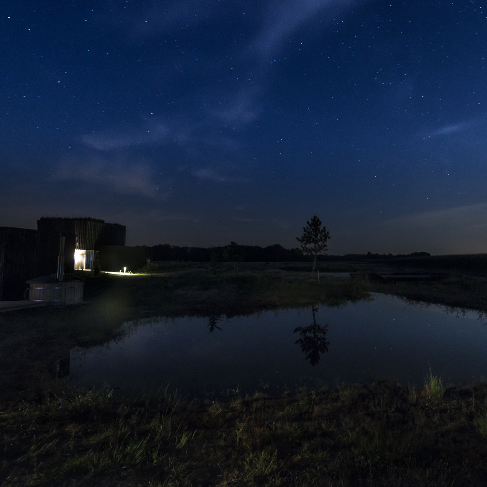 De luxe vrijstaande vakantiehuizen zijn uniek en speciaal ontworpen. Duurzame bouwmaterialen, comfortabel verwarmd door aardwarmte, een sfeervolle speksteenkachel en naar alle kanten uitzicht over de natuur. Er is plaats voor maximaal 6 personen of 4 volwassenen en 4 kinderen. Bij de Vier Eiken heb je de keuze uit een comfort of een wellness vakantiehuis. Wanneer je kiest voor de wellness natuurlodge beschik je over een privé sauna en een hot tub op je terras. Zie je het al voor je? ’s Avonds in een warm bad onder de sterrenhemel in een van de donkerste gebieden in Nederland…