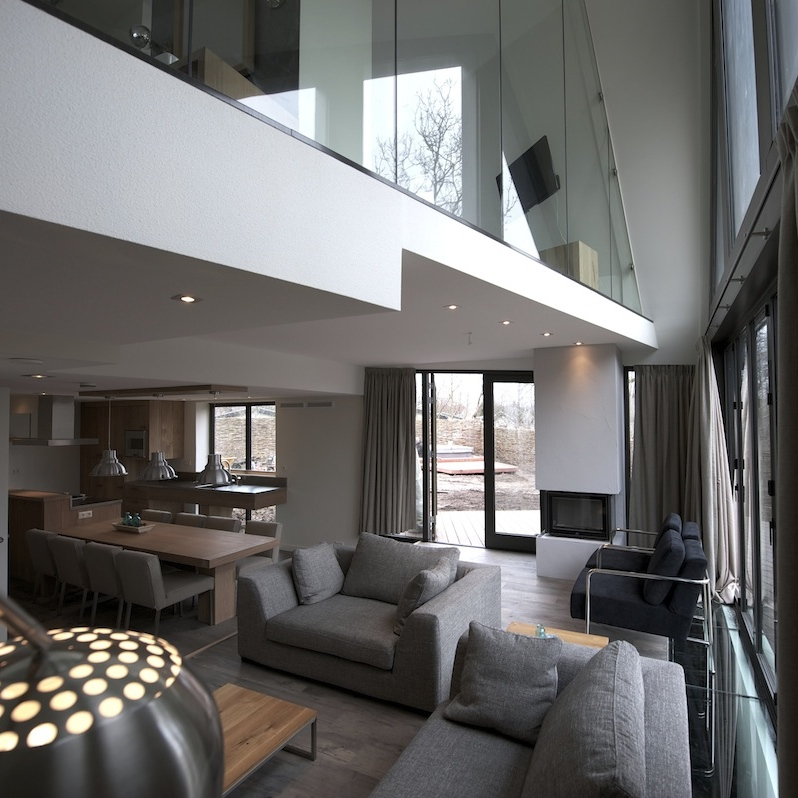 De bijzonder vormgegeven villa’s zijn maar liefst 160m2 en hebben vier slaapkamers. Elke slaapkamer heeft een eigen badkamer. De villa’s hebben een sauna, whirlpool of beiden. Een tuin met veel privacy, een buitenhaard, verschillende zitjes…