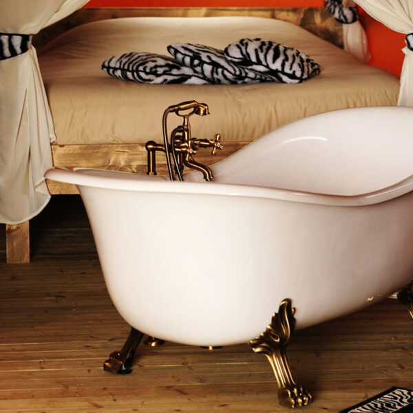 Verspreid op het domein van Kimaro liggen vijf luxe safaritenten, omringd door rust. Een romantisch hemelbed, een landelijke 2-persoonsbedstede en een stapelbed bieden plaats aan 6 personen. Een gezellige keuken, lange eettafel, knusse zithoek, schommelbank op de veranda en een bad op pootjes… Een geweldige buitenervaring in stijl!