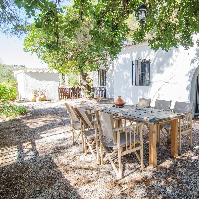Los dos Algarrobos is een vakantiehuis in Andalusië, iets ten zuiden van het witte dorp Cómpeta. Het huis, een voormalig siëstahuisje (cortijito) van een boer, ligt op een helling, beschut tussen de bomen en met zicht op zee. De bijzondere vakantiewoning dankt haar naam aan de twee zeer oude, knoestige Johannesbroodbomen die voor het huis staan. Ze geven veel beschutting en schaduw, maar ook bijzonder veel sfeer. Een echte ‘hide-away’, zonder in ‘the middle of nowhere’ te zitten. Net een droom…