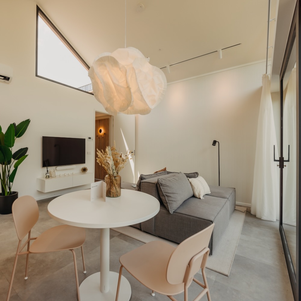 Marber Comfort is een tweepersoons vakantiehuis van 53m2, Marber Harmony voor vier personen heeft een oppervlakte van 93m2 en heeft twee slaapkamers. De meest luxe variant is de tweepersoons Marber Supreme, met 64 m² en een dakterras met buitenbad. Elk huis heeft alles in huis om niet meer weg te hoeven.