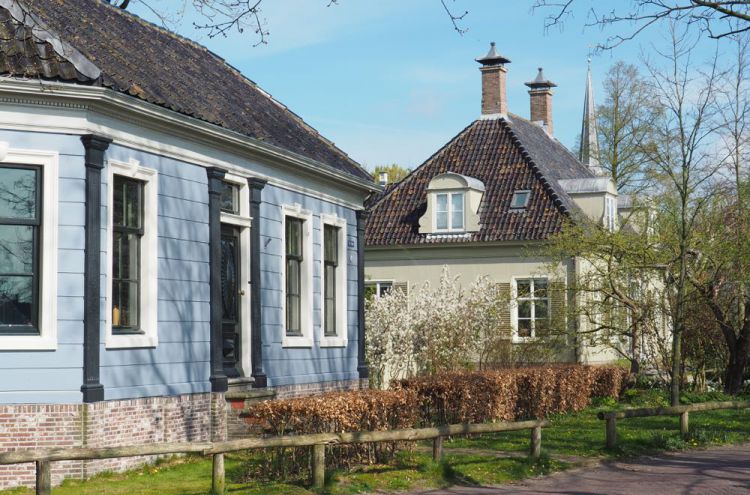 Wanneer je het dorp inrijdt, vallen direct de houten vrijstaande huizen op. Voornamelijk grijs gekleurd met een uitschieter naar groen, zachtgroen en blauw. Deze huizen bepalen het karakter van het dorp. Het voelt net alsof je hier in een ansichtkaart wandelt. Het beschermde dorpsgezicht bestaat uit smalle straten, een grote kerk als middelpunt, houten woningen rondom het water, een ophaalbrug; je gaat jaren terug in de tijd.