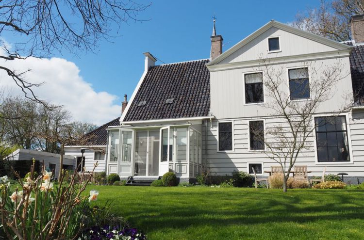 Het excentrieke stel past perfect bij de charme en het karakter van het huis. Pamela legt je graag in de watten. Het ontbijt ’s ochtend wordt geserveerd in de opkamer, de serre of op een van de terrassen in de tuin aan het water. De zalige geuren komen je vanuit de grote en gezellige keuken tegemoet. Start je dag met vers fruit, huisgemaakte granola met dikke yoghurt, warm brood, een goede cappucino, vers gebakken taart, vleeswaren, kaas uit de Beemster en….