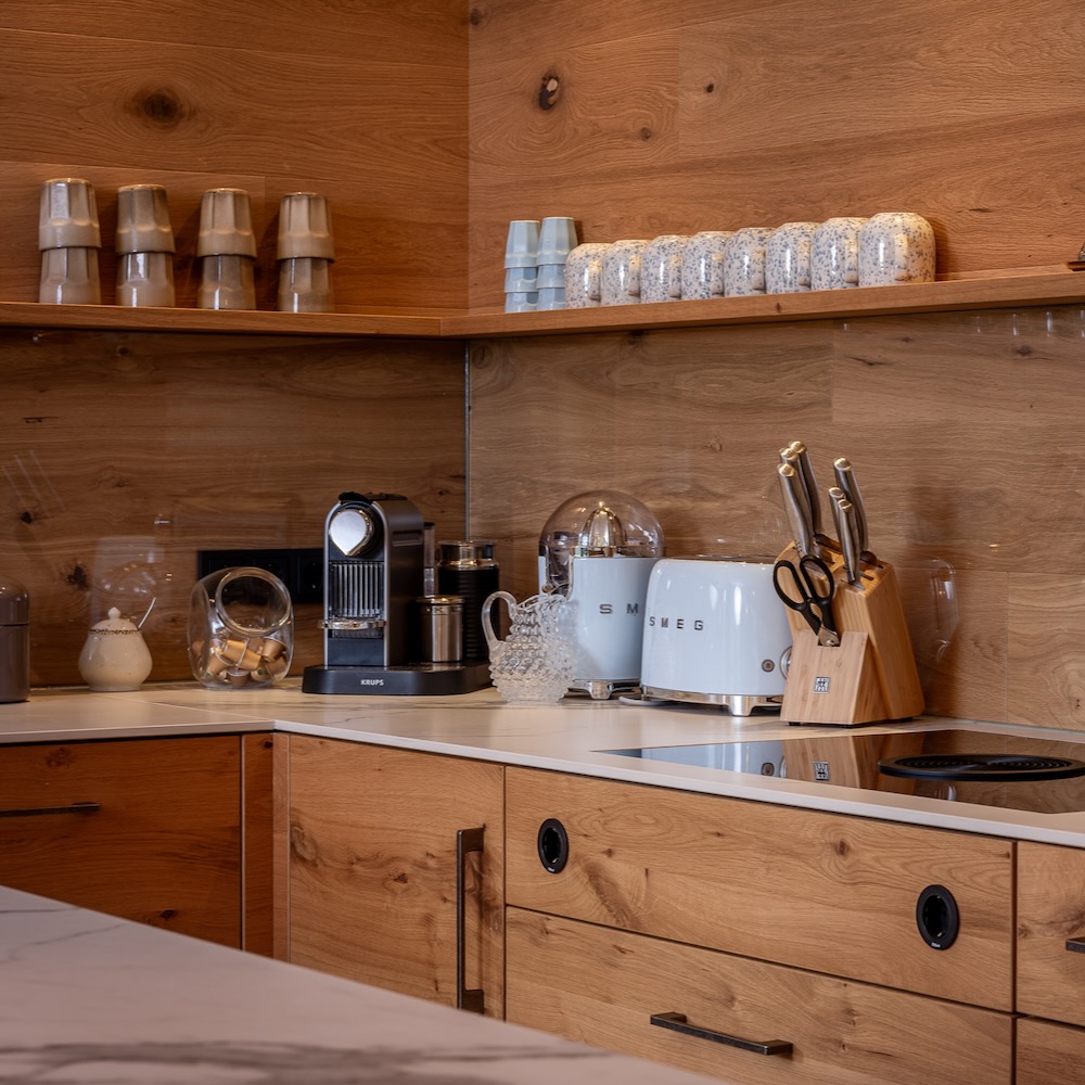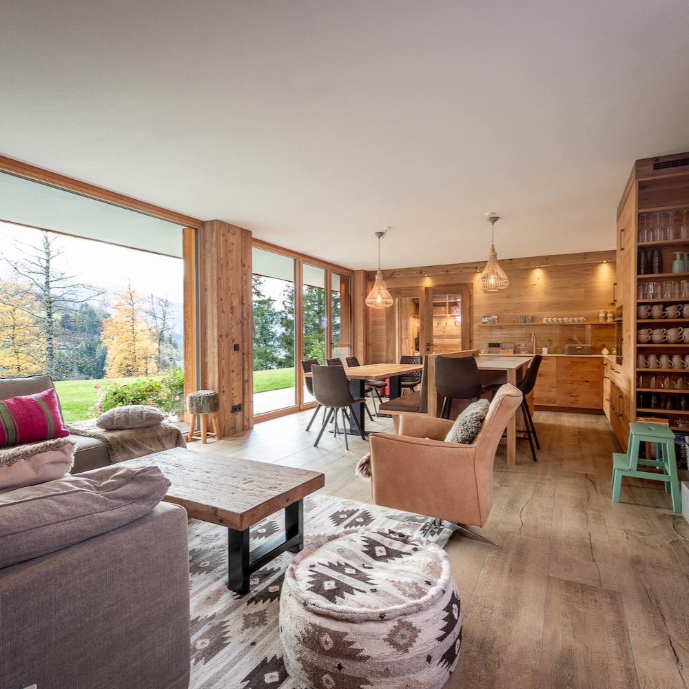 Er zijn knusse zithoeken, een luxe en compleet uitgeruste keuken (waar zelfs een sterrenchef enthousiast van werd), de privé sauna in de ruime tuin biedt een fantastisch uitzicht op de bergen van de Hochkönig. Buiten vind je ook een outdoor lounge, een overdekt terras met heaters, een BBQ en een vuurkorf: perfect voor lange gezellige avonden samen onder de sterren. Alles is tot in de puntjes verzorgd, van de fijne en luxe materialen tot de persoonlijke aandacht. De eigenaren zijn er wanneer je dat prettig vindt: voor een welkom, tips of om iets bijzonders te regelen. Van een privé-diner tot een gids voor op de berg, alles kan. Wil je volledig je eigen gang gaan, dan kan dat natuurlijk ook.