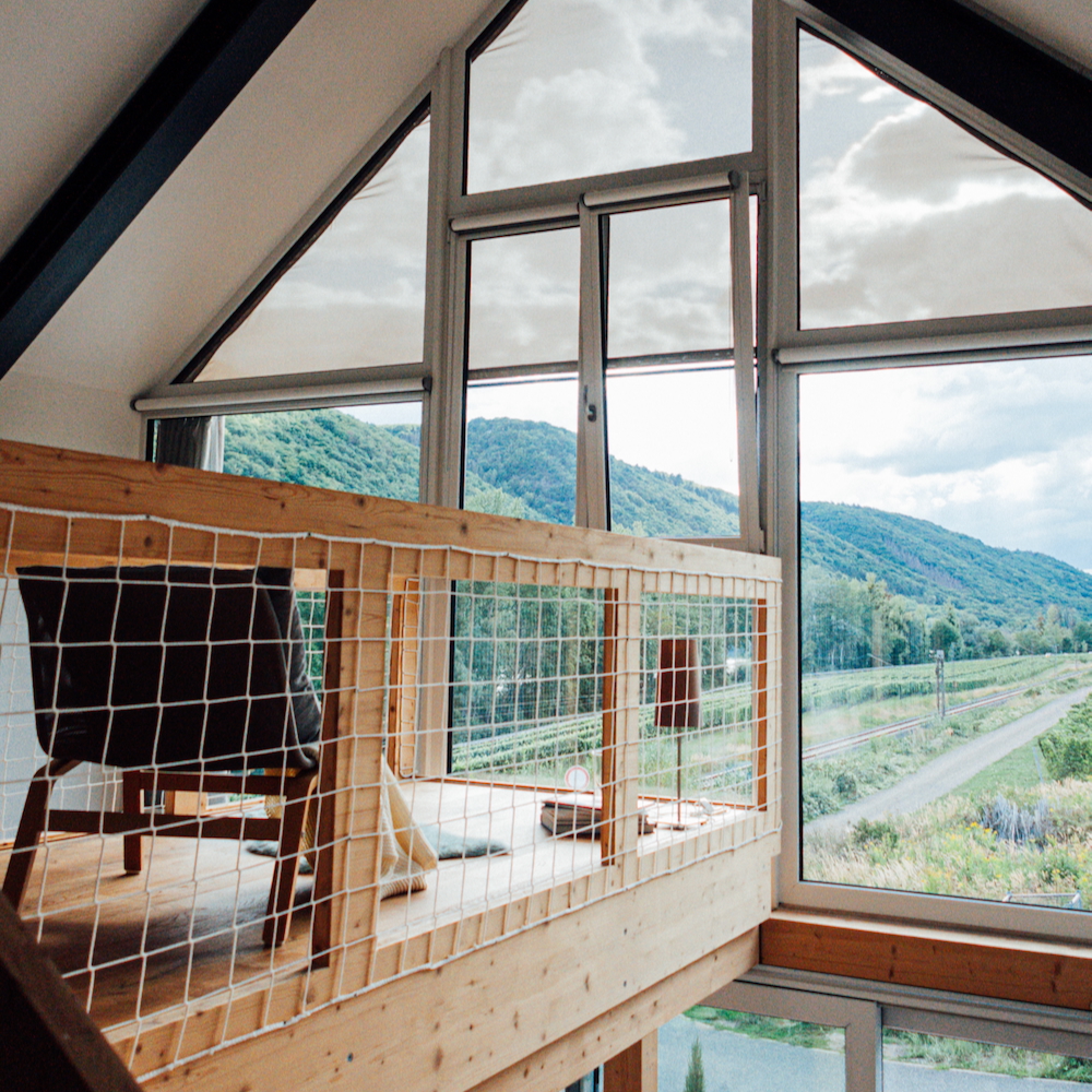 - Chalet Mosel: met extra panoramavenster met uitzicht op de Moezel en twee slaapkamers voor max. 4 personen.