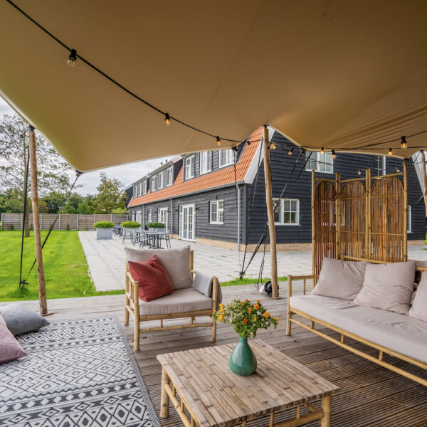 Geniet van vele extra’s tijdens je verblijf. Fietsen in alle soorten en maten staan op verzoek voor je klaar. De zwemvijver wacht uitnodigend op jouw frisse duik. Tijdens je weekendje weg of vakantie bij Nieuw Leven kun je ook de wellnesstuin reserveren, met een binnen en buiten douche, een barrelsauna met vrij uitzicht over de landerijen en verschillende relaxplekjes. Een schoonheidsbehandeling kun je ter plekke reserveren. Geen zin om te koken tijdens je verblijf? Vanaf 8 personen kunnen er diverse lokale cateringbedrijven een (privé) diner verzorgen in je vakantievilla.