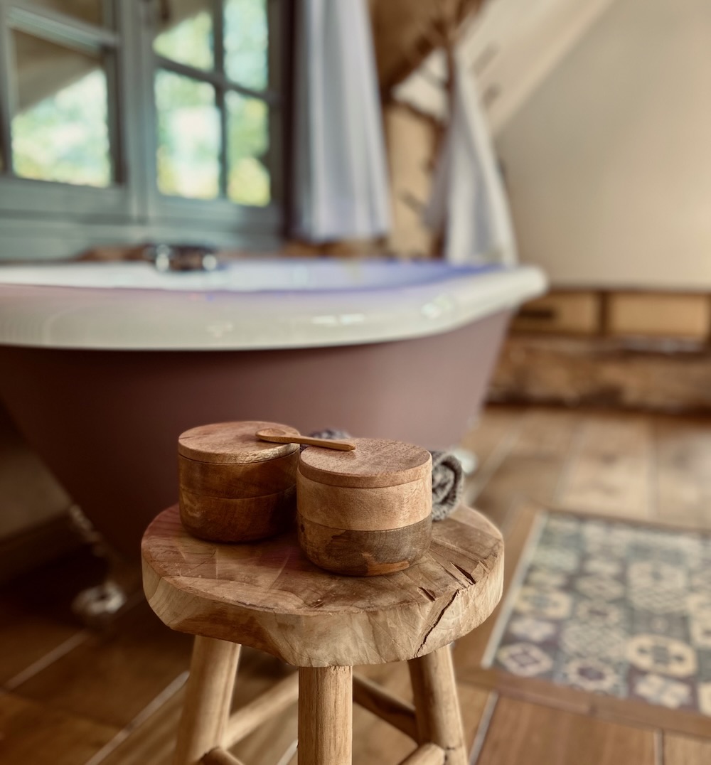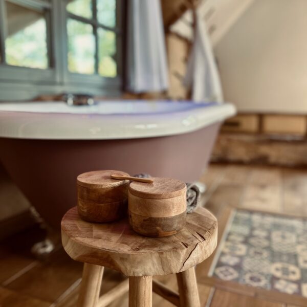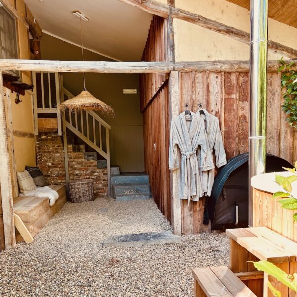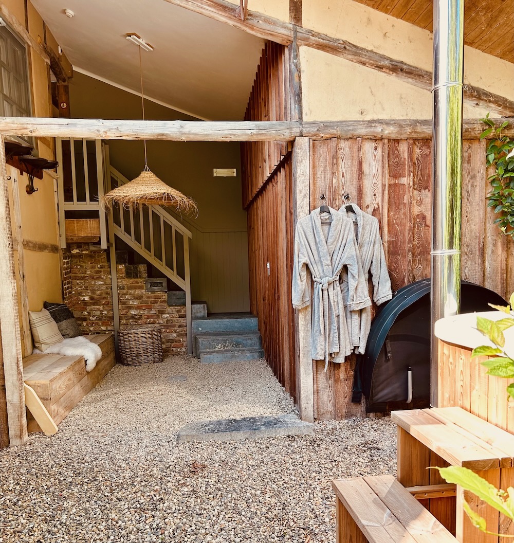 De hottub is apart te reserveren bij je verblijf. Een badjas, badslippers en handdoeken liggen dan klaar. Het enige wat je hoeft te doen is het vuurtje te stoken voor lekker warm water.