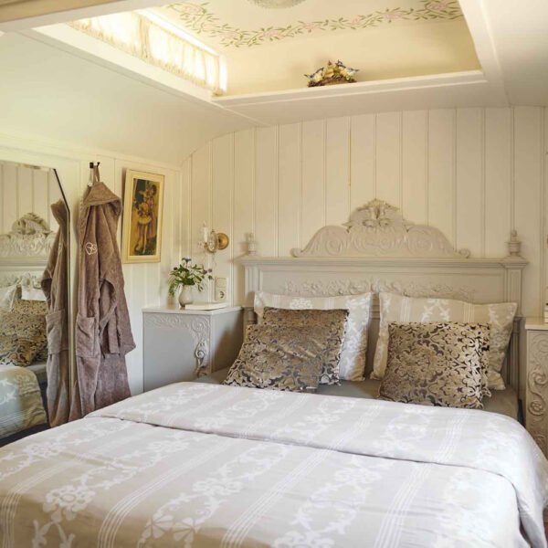 De Mammaloewagen van Buitengoed de Gaard is net een hotelkamer op wielen! De pipowagen is een ruime, verrassende vakantieplek voor 4 personen of in combinatie met de Pipowagen deluxe voor 8 personen. Net zo luxe ingericht als de deluxe wagen, maar nog ruimer/groter en met twee ‘slaapkamers’. De Mammaloewagen staat op een groot veld, met vrij uitzicht over de weilanden. Op je privé terras staan een Dutchtub, comfortabele ligstoelen en op de veranda bij huis de eettafel. Probeer een keertje vroeg op te staan om de zonsopgang te bewonderen!