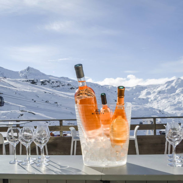 - Op de piste lunchen op het grote terras La Rôtisserie