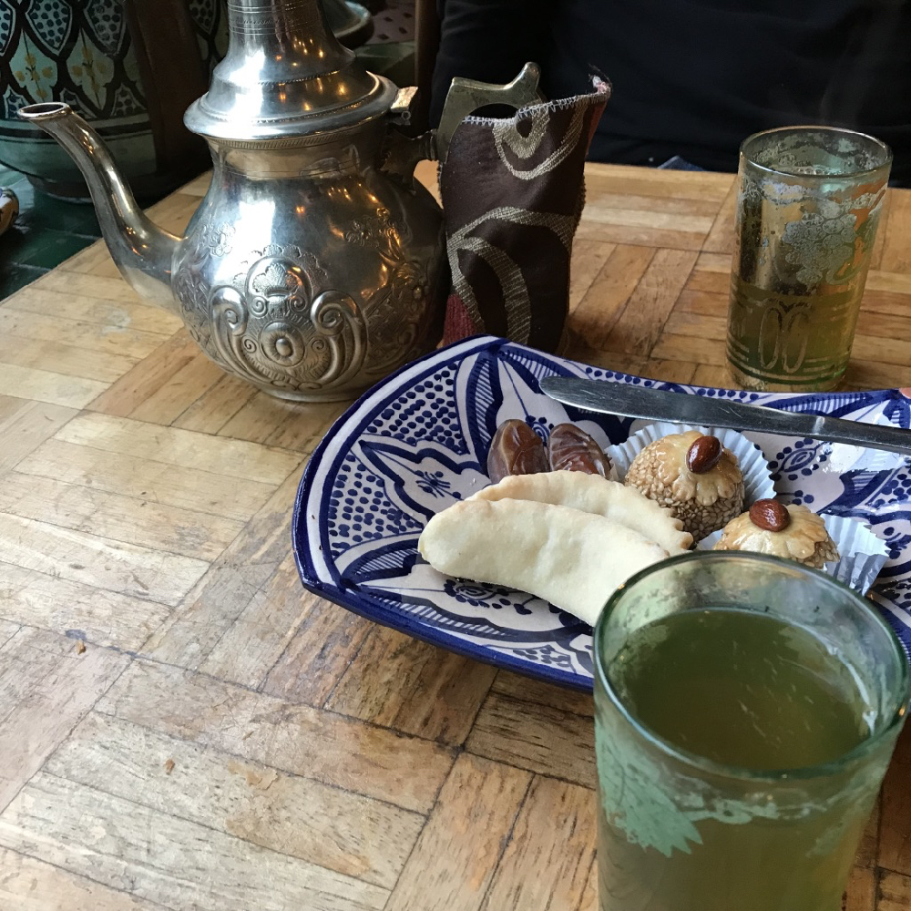 ’s Avonds dineer ik bij El Warda. Een Marokkaans restaurant op de grens van de wijk Borgerhout en Zurenborg. Ik word niet meteen blij van het interieur van het restaurant. Wanneer mijn armen vervolgens ook nog bijna aan de tafel plakken denk ik erover me te verontschuldigen om vlakbij, op de altijd bruisende Dageraadsplaats te gaan eten. Op dat moment wordt de allerlekkerste lamstajine ooit spetterend en dampend voor mij neergezet. Logisch dat de tafel plakt. Wanneer de gastheer tenslotte van grote hoogte zoete muntthee in mijn glas schenkt met daarbij een bordje baklava, kan mijn avond niet meer stuk. Ik neem mij voor voorlopig niet meer te oordelen op het uiterlijk maar de goede referenties te geloven.