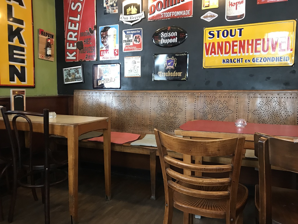 Ik besluit niet langer de regen te trotseren en ga schuilen bij café Mombassa. Het blijkt mijn beste keus van vandaag. Gelegen in de ‘schaduw’ van het prachtige oude gemeentehuis van Borgerhout ligt deze stamkroeg van Belgische wielerliefhebbers. De Borgerhoutse wielerheld Stannecke Ockers heeft er een ereplaats. Aan de ‘toog’ koop je hier naast bier een Mombassa koerstruike of een cadeauzakje vol gist en goesting. Toeval of niet, café Mombassa is de Orval ambassadeur van 2019. De enige in de stad Antwerpen. Zowel de jonge als de gerijpte Orval worden hier verkocht. Laat die laatste nou net mijn lievelingsbier zijn.